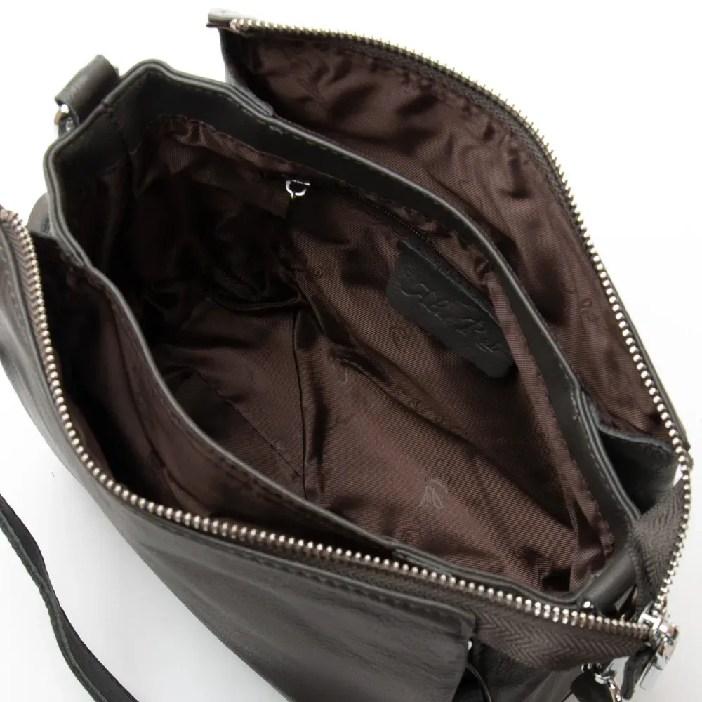 Женская сумка Alex Rai. Изготовлена из натуральной мягкой кожи. Внутри сумки есть три отделения которые закрываются на общую молнию. Внутри центрального отделения находится боковой открытый карман и карман на молнии. Снаружи сумки на обратной стороне и торцах расположены карманы на молнии. Дно сумки уплотненное, с металлическими ножками.