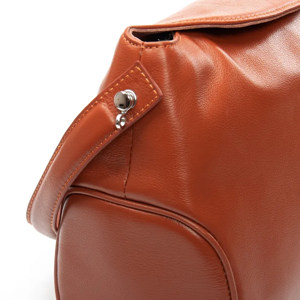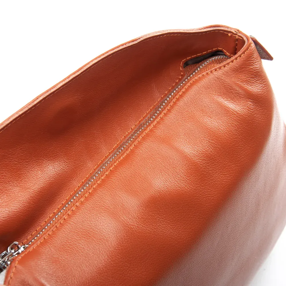 Закрывается клапаном с магнитной фиксацией и дополнительно на молнию. Внутри находится одно отделение, в котором есть боковой карман на молнии и открытый карман. Снаружи сумки на обратной стороне расположен большой карман на молнии. Уплотненное дно.