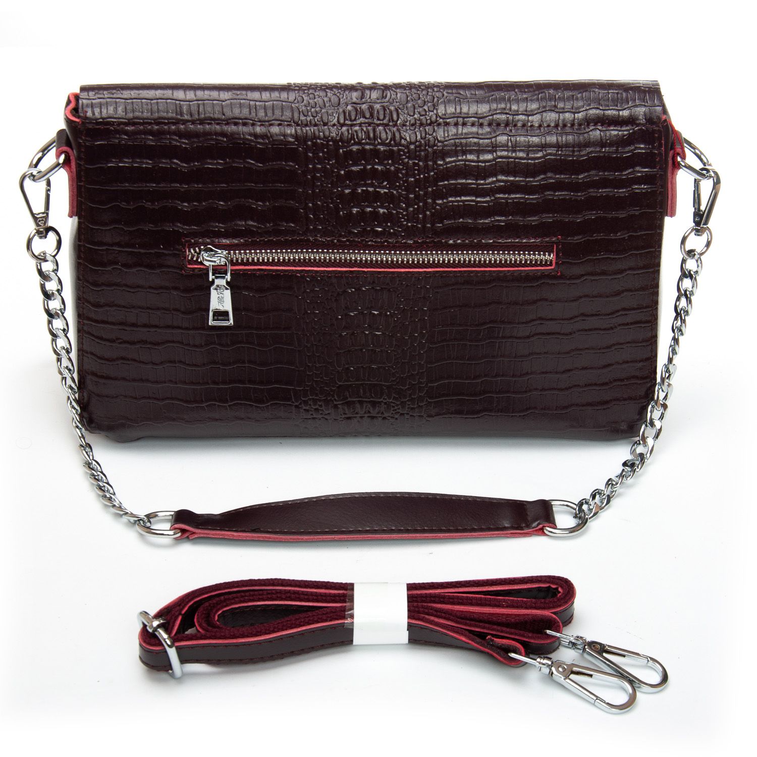 В комплекте сьемная ручка-цепочка и регулируемый плечевой ремень.