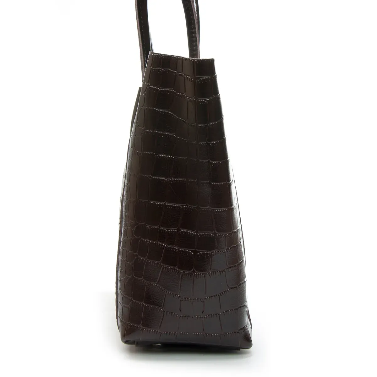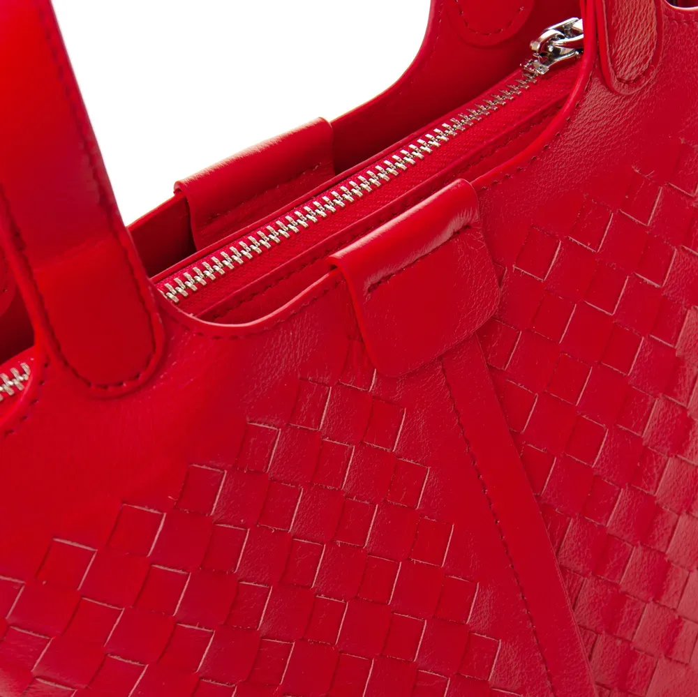 Закрывается на молнию. Внутри находится двойное отделение, разделенное карманом-перегородкой на молнии, открытый карман и боковой карман на молнии. Уплотненное дно на металлических ножках.