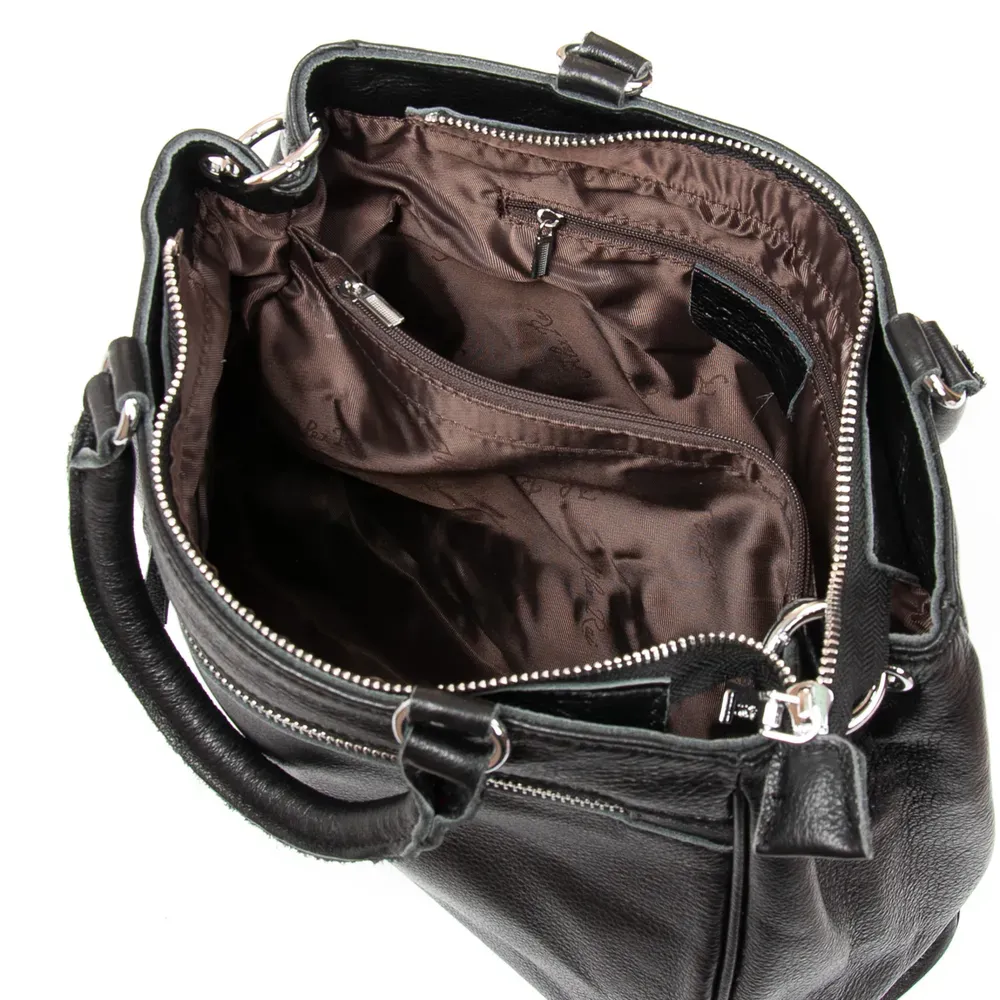 Жіноча шкіряна сумочка Alex Rai. Виготовлена із натуральної м'якої шкіри. Закривається на блискавку. Усередині знаходяться три відділення. В одному з відділень є бічна кишеня на блискавці. У комплекті регульований плечовий ремінь.