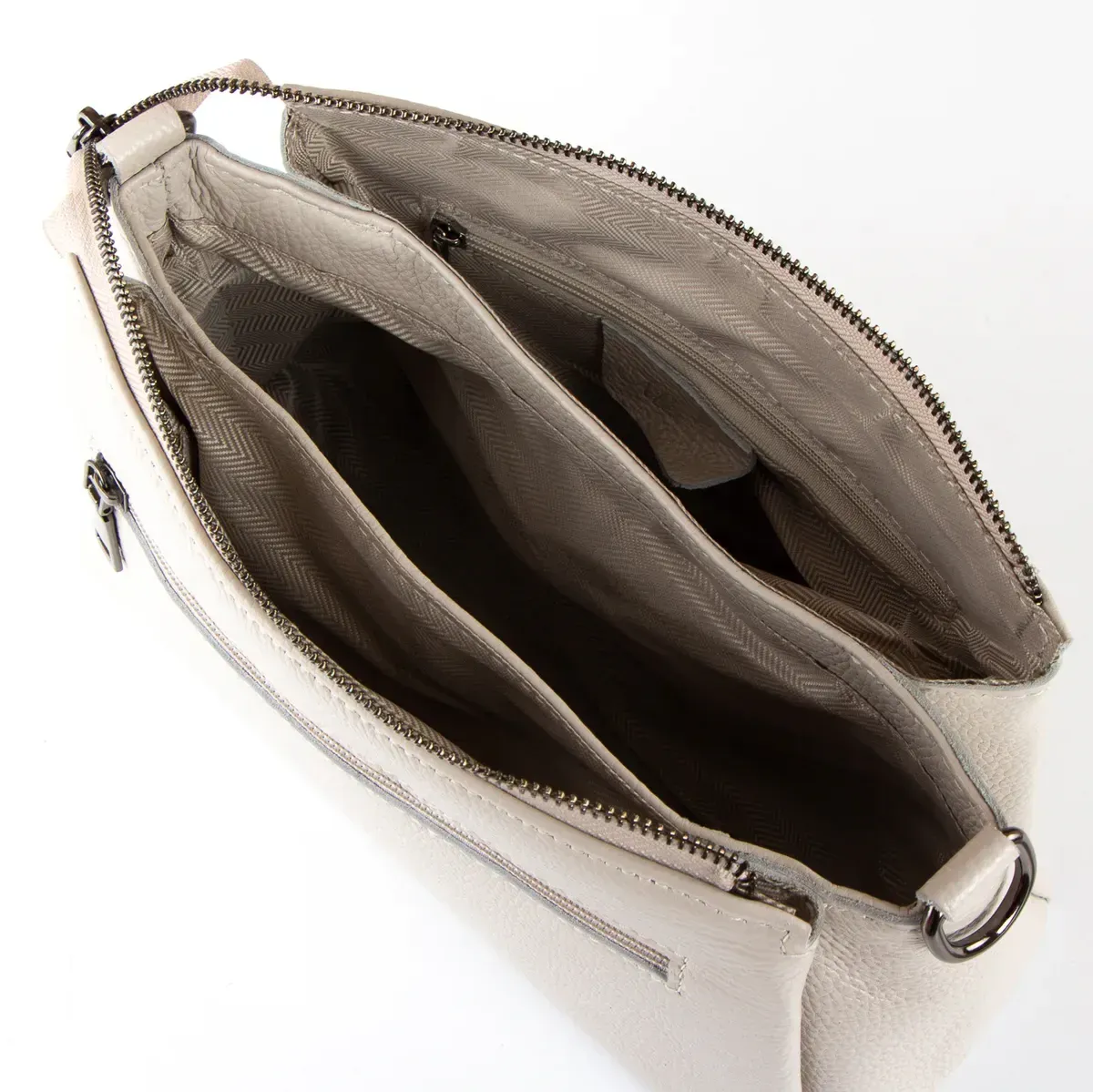Жіноча шкіряна сумка Alex Rai. Виготовлена із натуральної м'якої шкіри. Закривається на блискавку. Усередині знаходяться три відділення. Усередині відділень є бічна кишеня на блискавці та відкрита кишеня. Зовні сумки на звороті знаходиться кишеня на блискавці. Ущільнене дно.