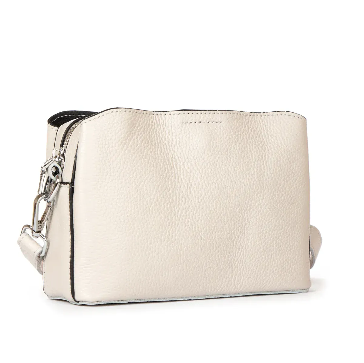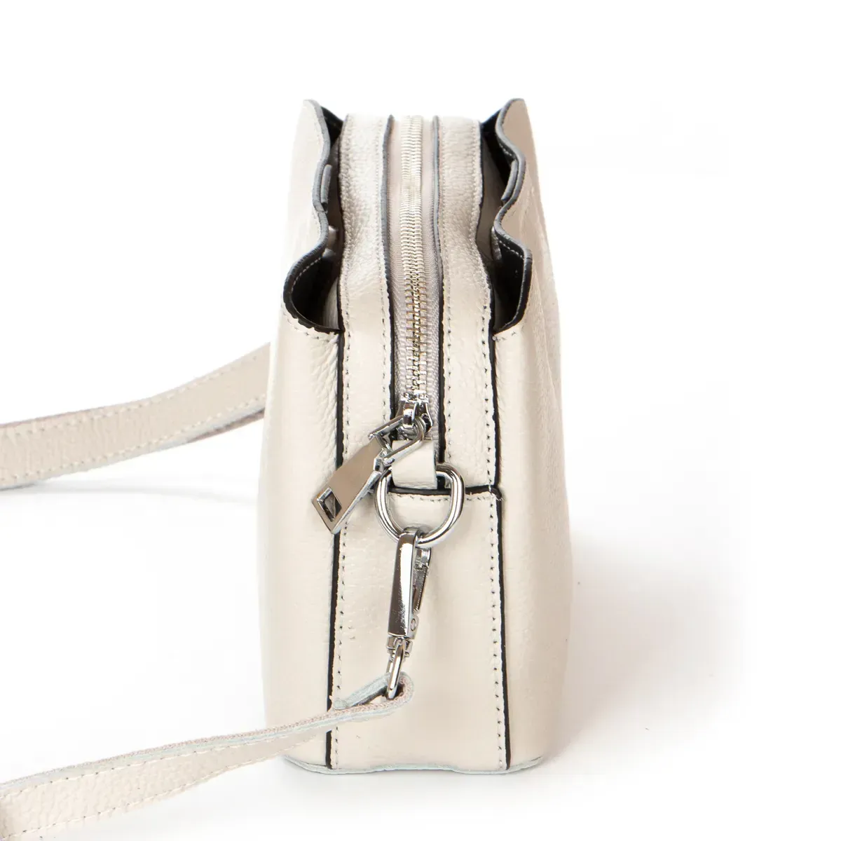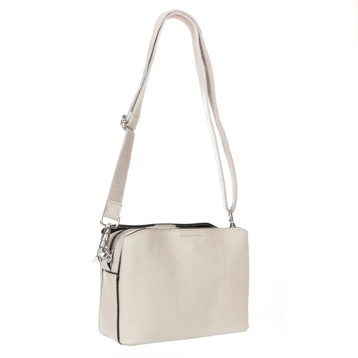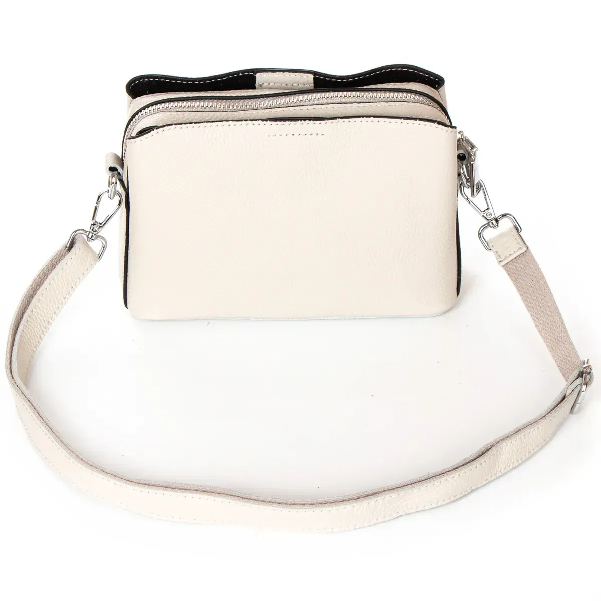 Жіноча шкіряна сумочка Alex Rai. Виготовлена із натуральної м'якої шкіри. Фасад та зворотний бік однакові. Три відділення: центральне закривається на блискавку, а бічні – на магнітні кнопки. Усередині центрального відділення є бічна кишеня на блискавці та відкрита кишеня. Жорстке дно.