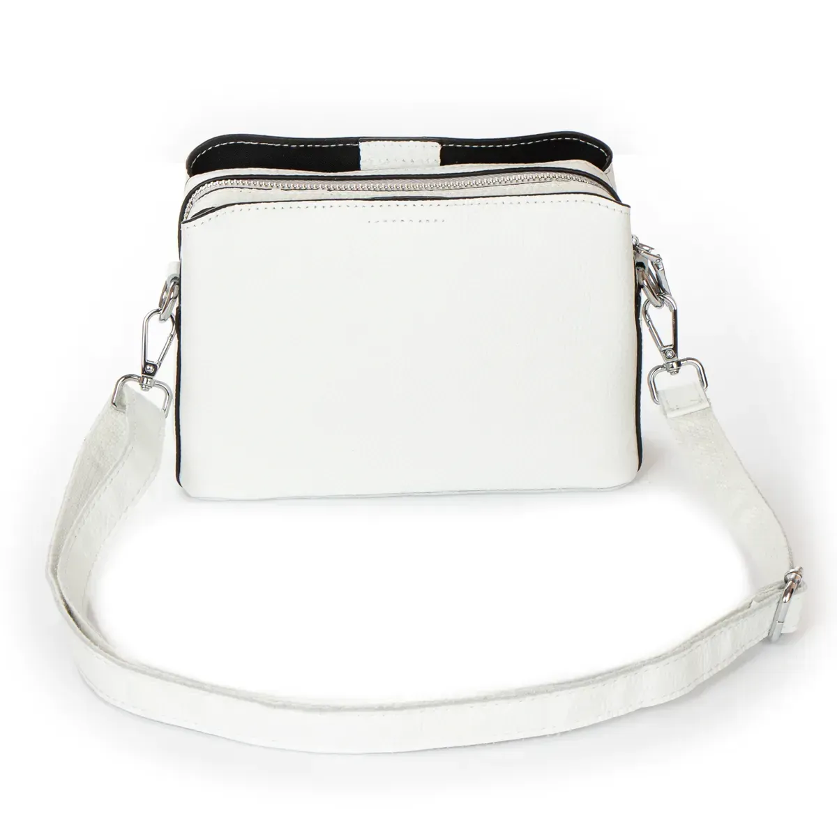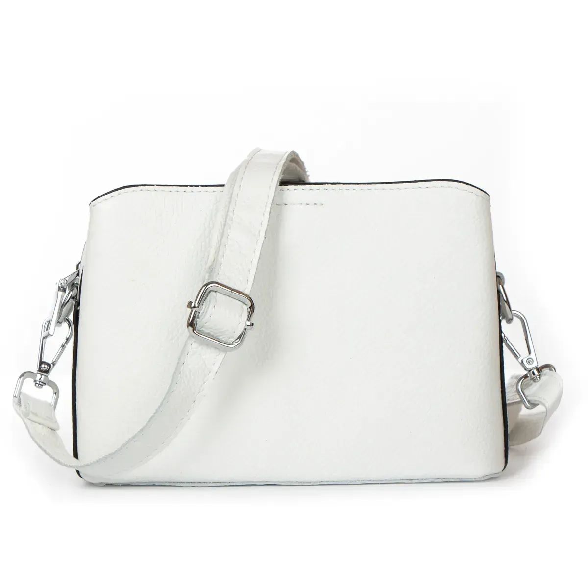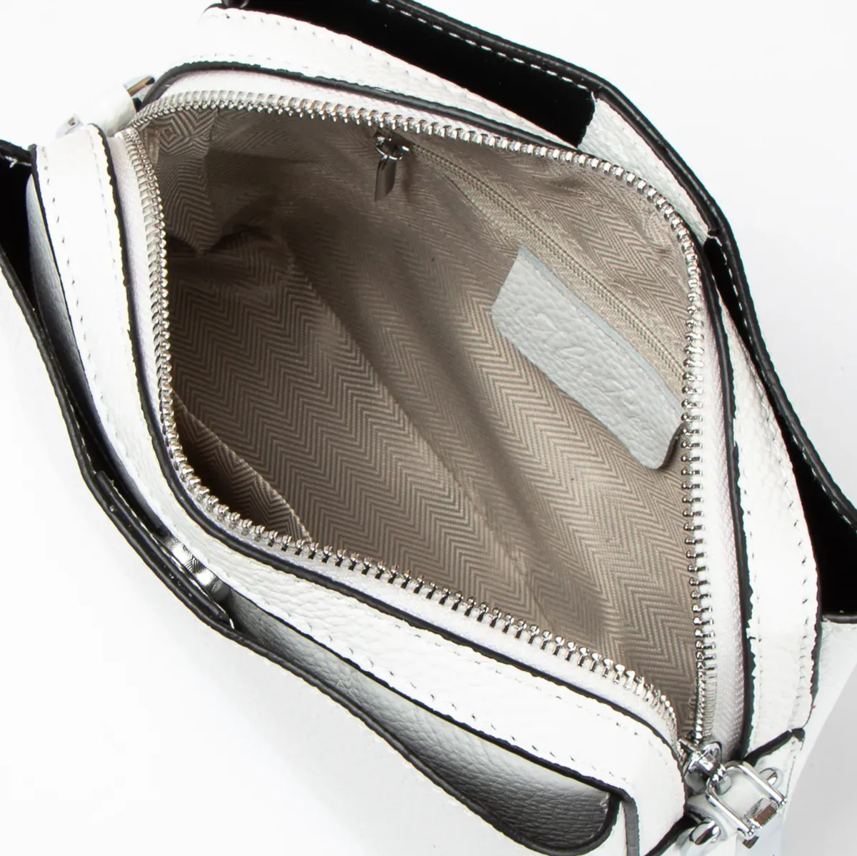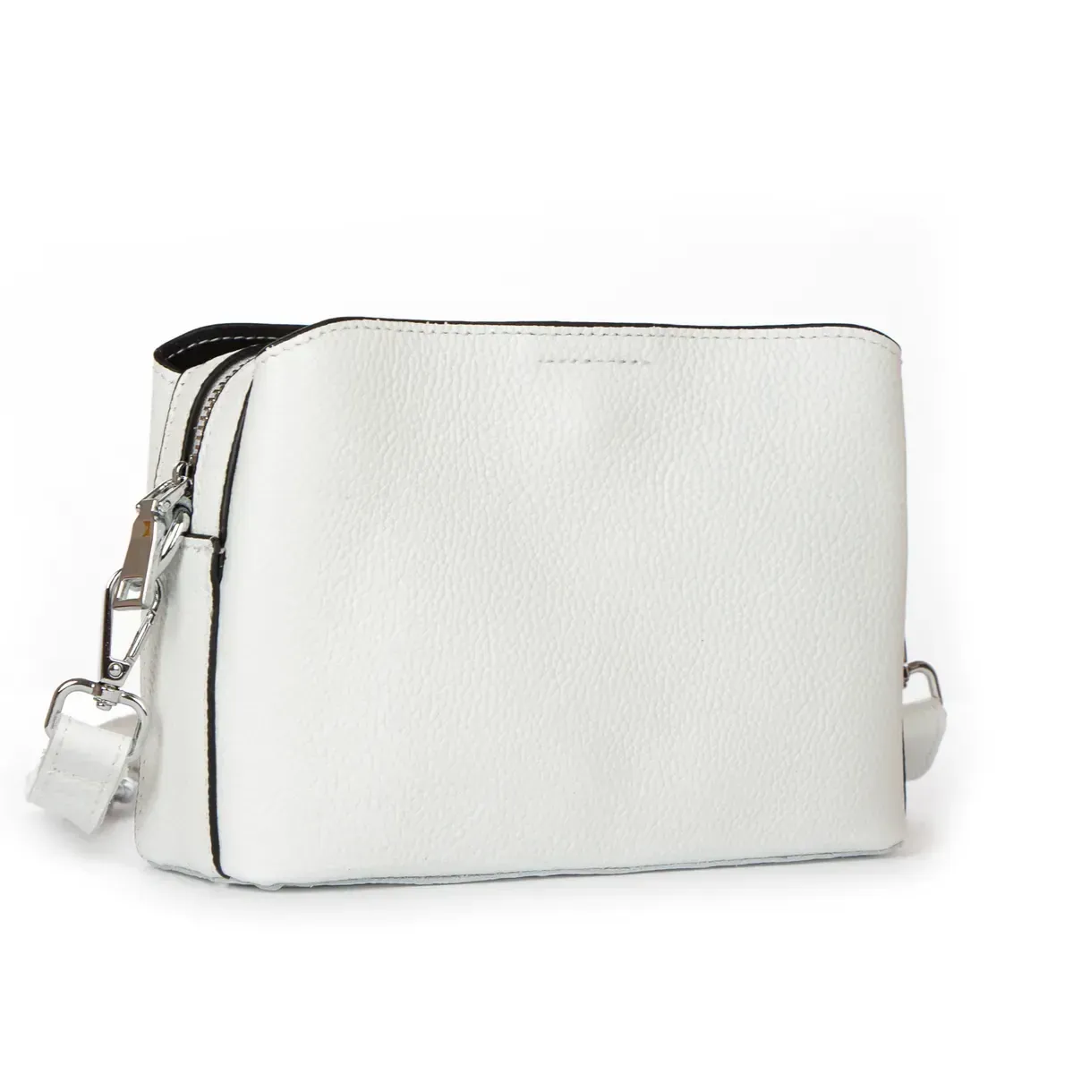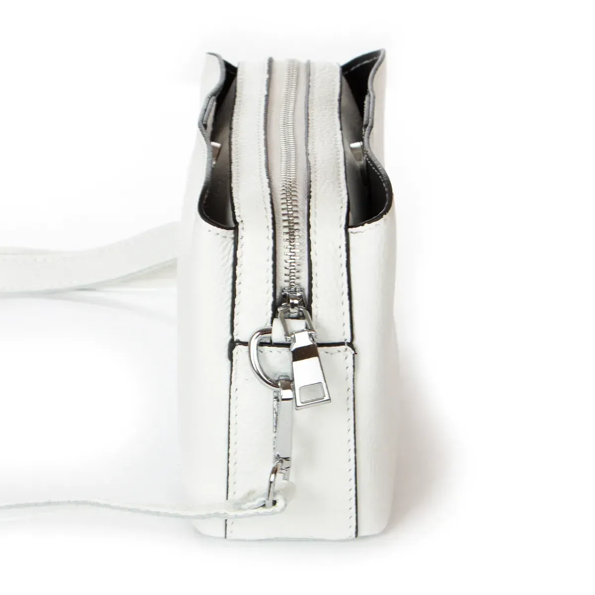 Жіноча шкіряна сумочка Alex Rai. Виготовлена із натуральної м'якої шкіри. Фасад та зворотний бік однакові. Три відділення: центральне закривається на блискавку, а бічні – на магнітні кнопки. Усередині центрального відділення є бічна кишеня на блискавці та відкрита кишеня. Жорстке дно.