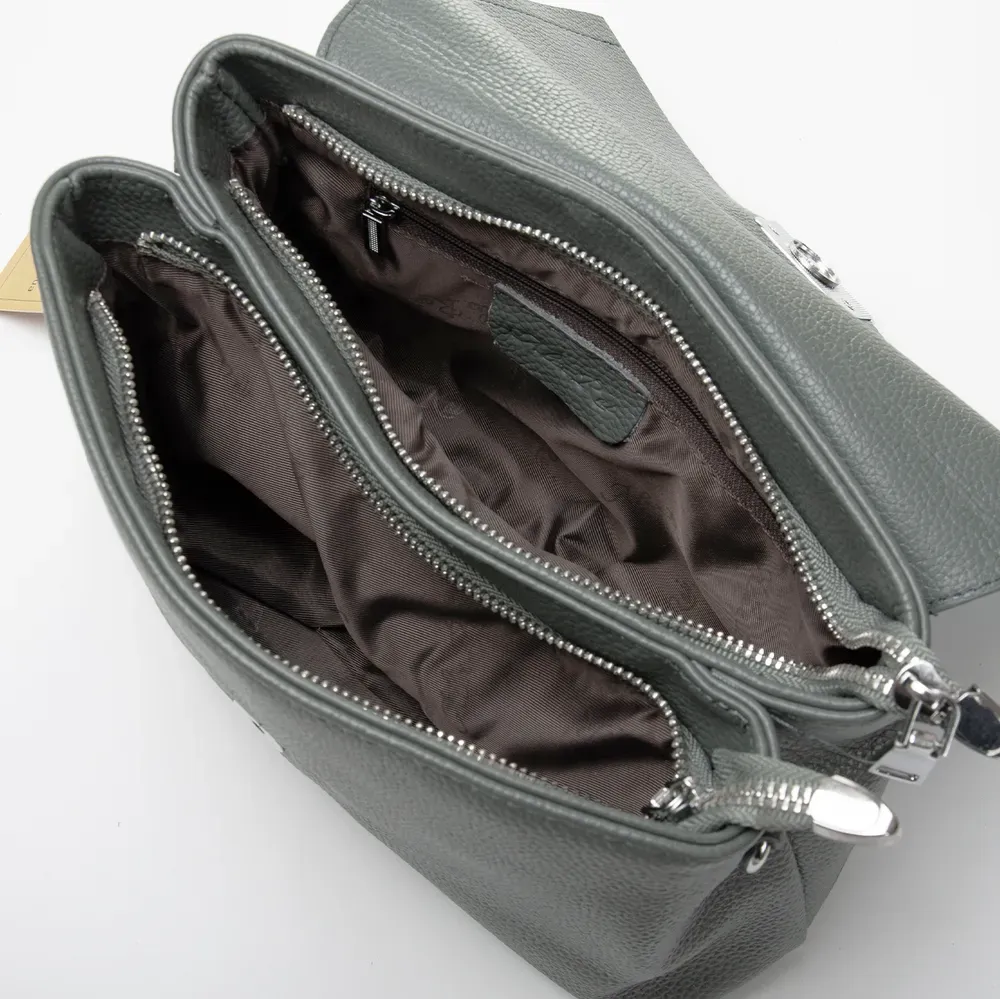 Женская кожаная сумка Alex Rai. Изготовлена из натуральной мягкой кожи. Под клапаном находятся два отделения, которые дополнительно закрываются на молнии. Внутри отделений есть боковой карман на молнии и открытый карман. Снаружи сумки на обратной стороне находится карман на молнии. Клапан закрывается на магнит. Уплотненное дно.