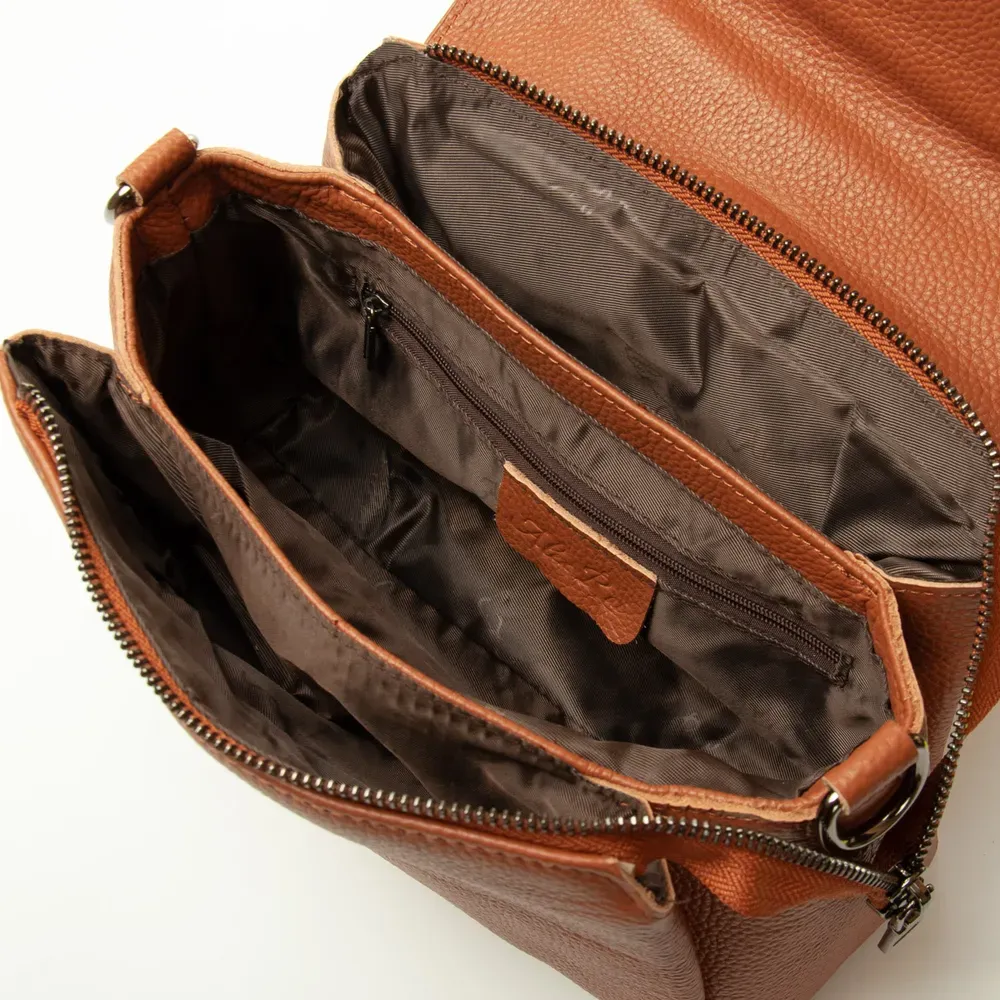 Женская кожаная сумочка Alex Rai. Изготовлена из натуральной мягкой кожи. Под клапаном дополнительно закрывается на молнию. Внутри находятся три отделения. Внутри центрального отделения есть боковой карман на молнии и открытый карман. Снаружи сумки на обратной стороне расположен карман на молнии.
