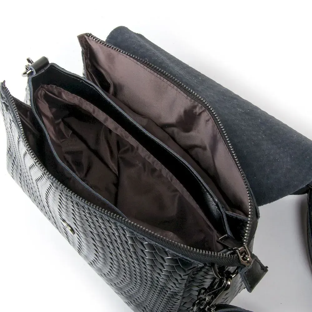Жіноча сумочка Alex Rai. Під клапаном додатково закривається на блискавку. Усередині знаходиться три відділення. У середньому відділенні є відкрита кишеня та кишеня на блискавці. Зовні сумки на звороті розташована кишеня на блискавці. У комплекті є регульований плечовий ремінь та знімна ручка.