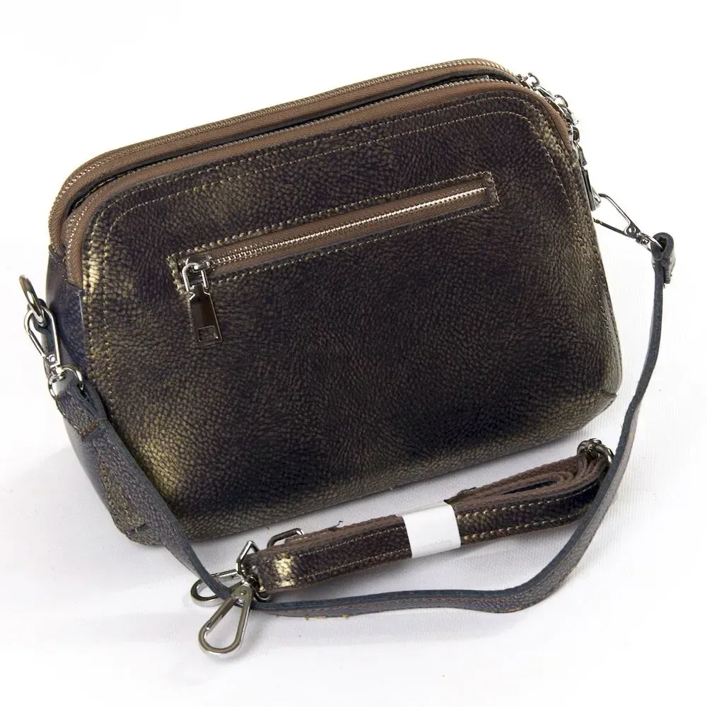 Жіноча сумочка-клатч. Виготовлена із натуральної м'якої шкіри. Три відділення, що закриваються на блискавці. Усередині центрального відділення знаходиться подвійна відкрита кишеня та кишеня на блискавці. На звороті є кишеня на блискавці. У комплекті регульований плечовий ремінь і ручка, що знімається.