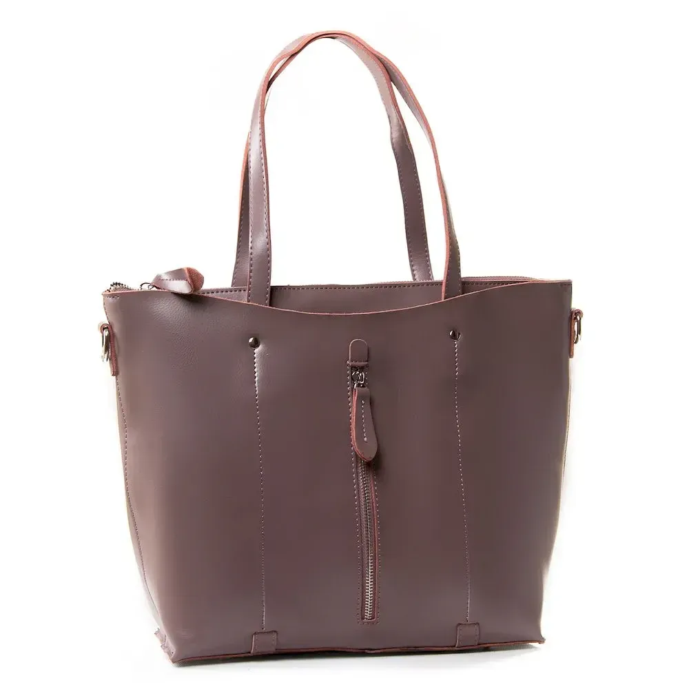 Жіноча сумка із натуральної шкіри. Закривається на блискавку. Усередині сумки подвійне відділення, розділене кишенею-перегородкою на блискавці, бічна кишеня на блискавці та відкрита подвійна кишеня. На звороті сумки кишеню на блискавці. Дно сумки щільне із металевими ніжками. У комплекті регульований плечовий ремінь.