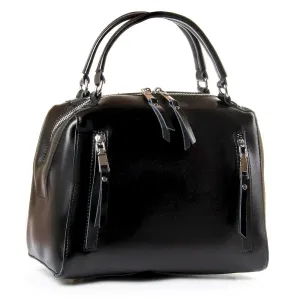 Жіноча сумка. Виготовлена із натуральної щільної шкіри. Закривається на блискавку. Усередині знаходиться основне та додаткове відділення розділене кишенею-перегородкою на блискавці, відкрита кишеня та бічна кишеня на блискавці. На фасаді та на звороті є кишені на блискавці. У комплекті регульований плечовий ремінь.