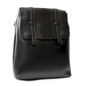 Жіночий шкіряний рюкзак. Виготовлений з натуральної щільної шкіри. Можна носити на плечі на ремені, що регулюється. Під клапаном додатково закривається на блискавку. Усередині знаходиться подвійне відділення, розділене кишенею-перегородкою на блискавці, подвійна відкрита кишеня та кишеня на блискавці. Зовні рюкзака на звороті розташована кишеня на блискавці. Плямові лямки регулюються по довжині.