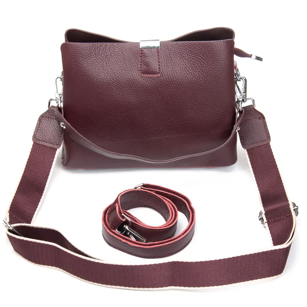 В комплекте: регулируемый кожаный плечевой ремень, широкий ремень-лента и сьемная ручка.