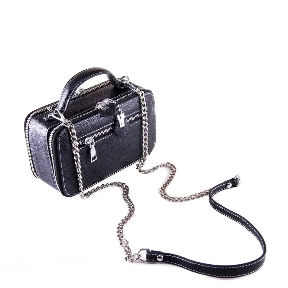 Жіночий каркасний клатч Alex Rai. Виготовлений із натуральної щільної шкіри. Три відділення, що закриваються на подвійну блискавку. Усередині є відкрита кишеня та кишеня на блискавці. Зовні клатча на стороні є кишеня на блискавці. У комплекті плечовий ремінь-ланцюжок.