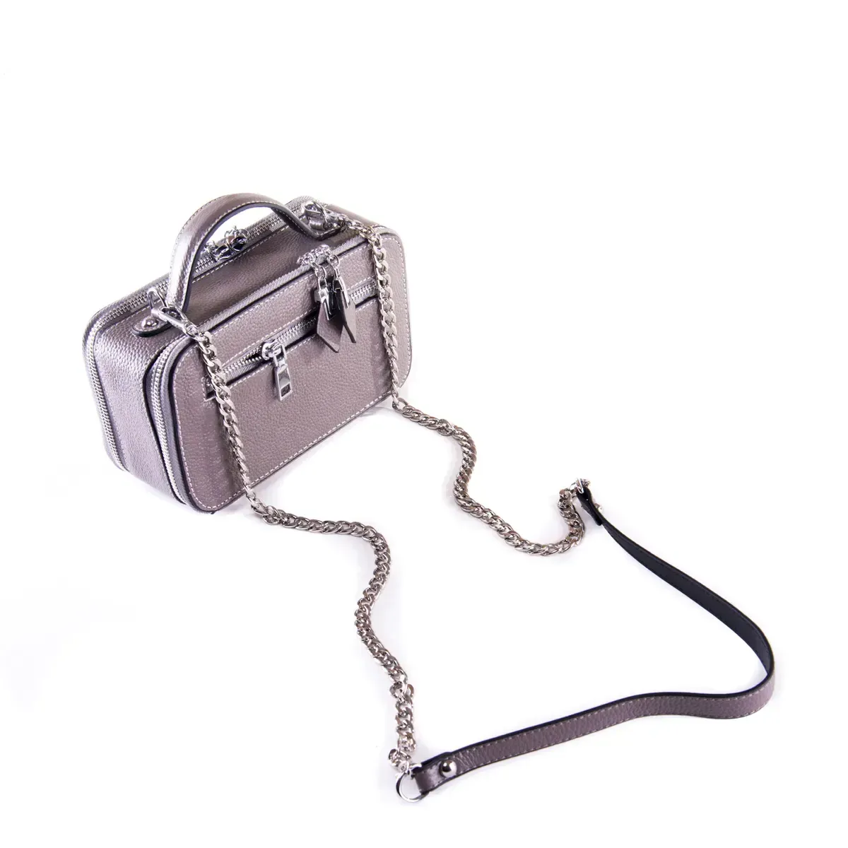 Жіночий каркасний клатч Alex Rai. Виготовлений із натуральної щільної шкіри. Три відділення, що закриваються на подвійну блискавку. Усередині є відкрита кишеня та кишеня на блискавці. Зовні клатча на стороні є кишеня на блискавці. У комплекті плечовий ремінь-ланцюжок.