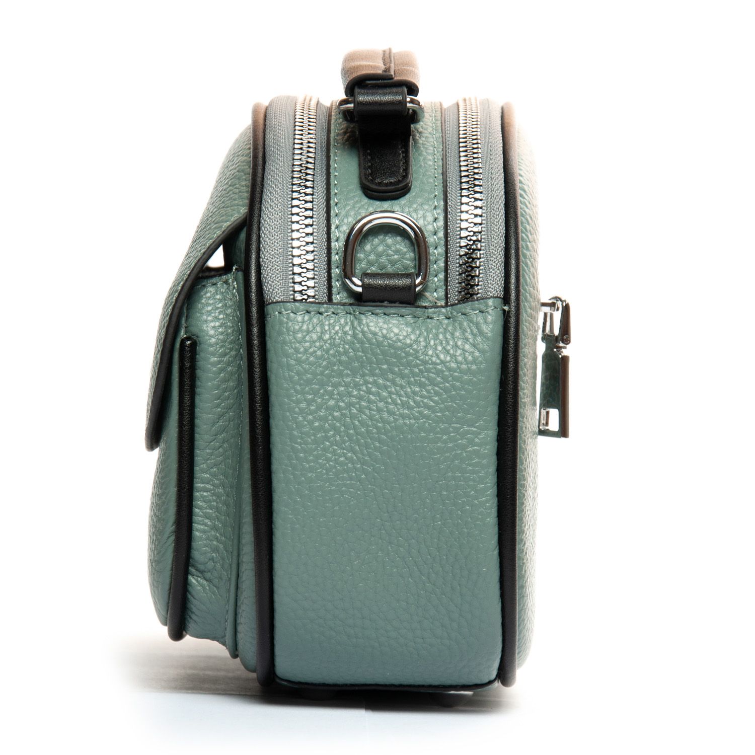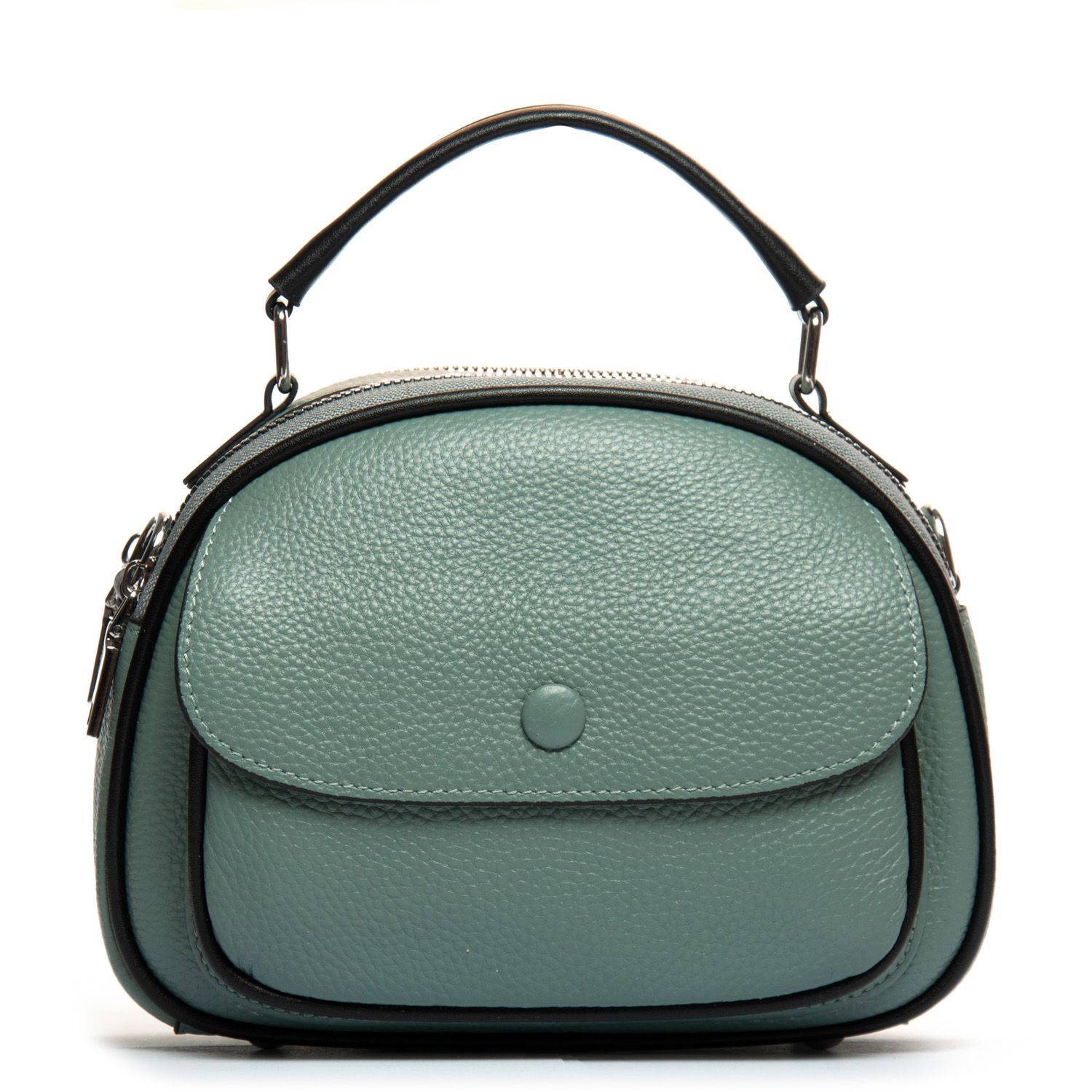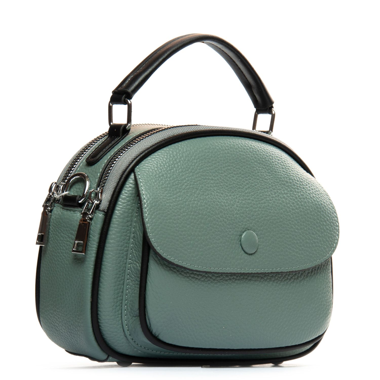 Два отделения, закрываются на молнии. Внутри находится боковой карман на молнии и открытый карман. Снаружи сумочки на фасаде есть карман под клапаном на магнитной кнопке, а на обратной стороне расположен карман на молнии.