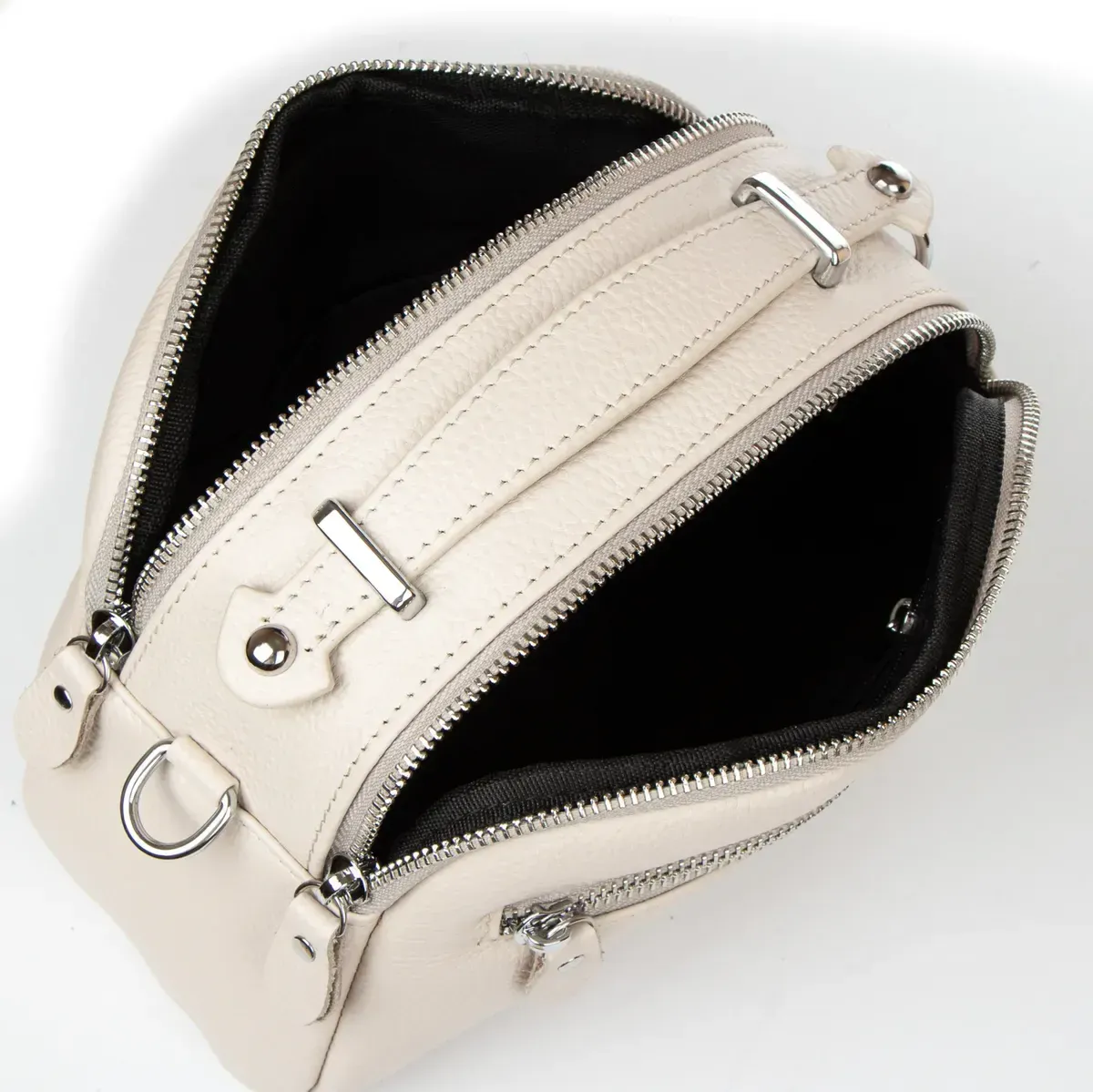 Жіноча сумочка-клатч Alex Rai. Виготовлена із натуральної м'якої шкіри. Одне відділення, що закривається на подвійну блискавку. Усередині відділення знаходиться кишеня-перегородка на блискавці, відкрита кишеня та кишеня на блискавці. На звороті є кишеня на блискавці. У комплекті регульований плечовий ремінь.