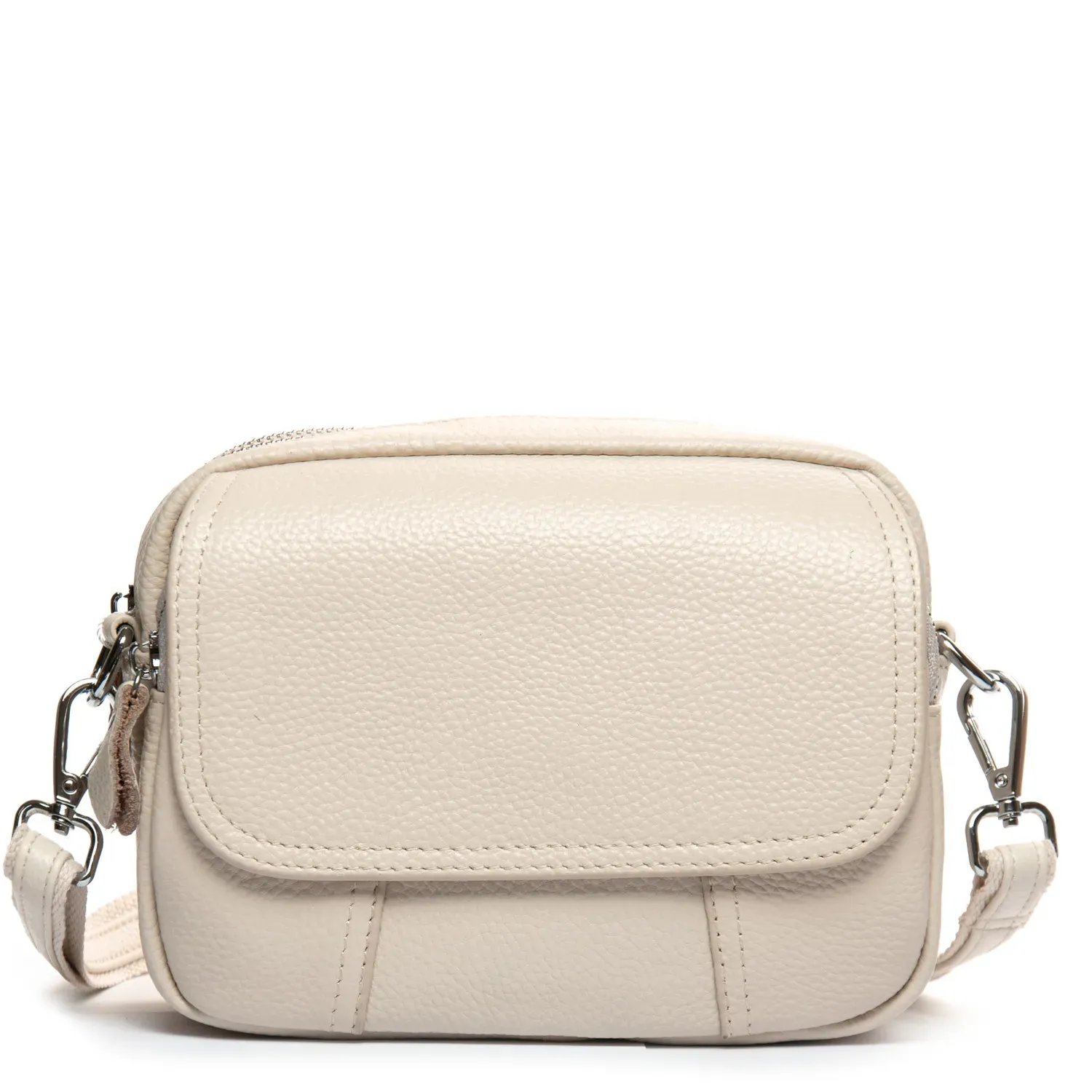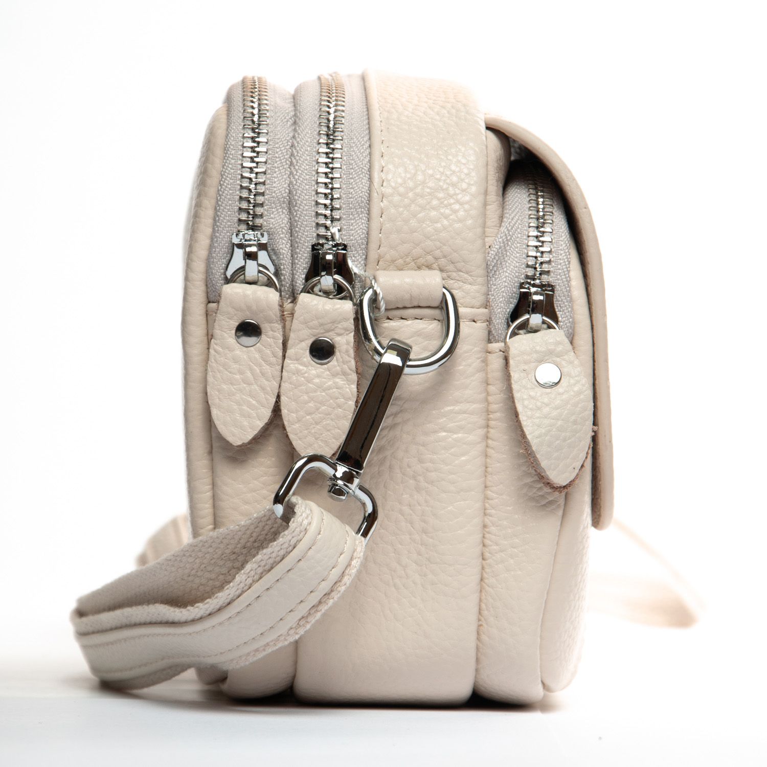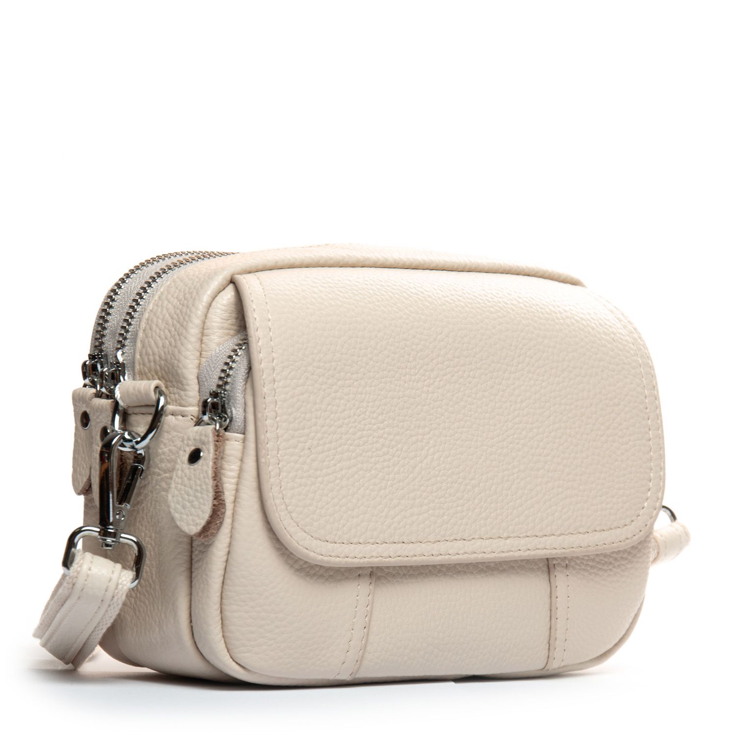 Два отделения, закрываются на молнии. Внутри находится боковой карман на молнии. Снаружи сумочки на фасаде есть карман на молнии и дополнительно под клапаном на магнитной кнопке.