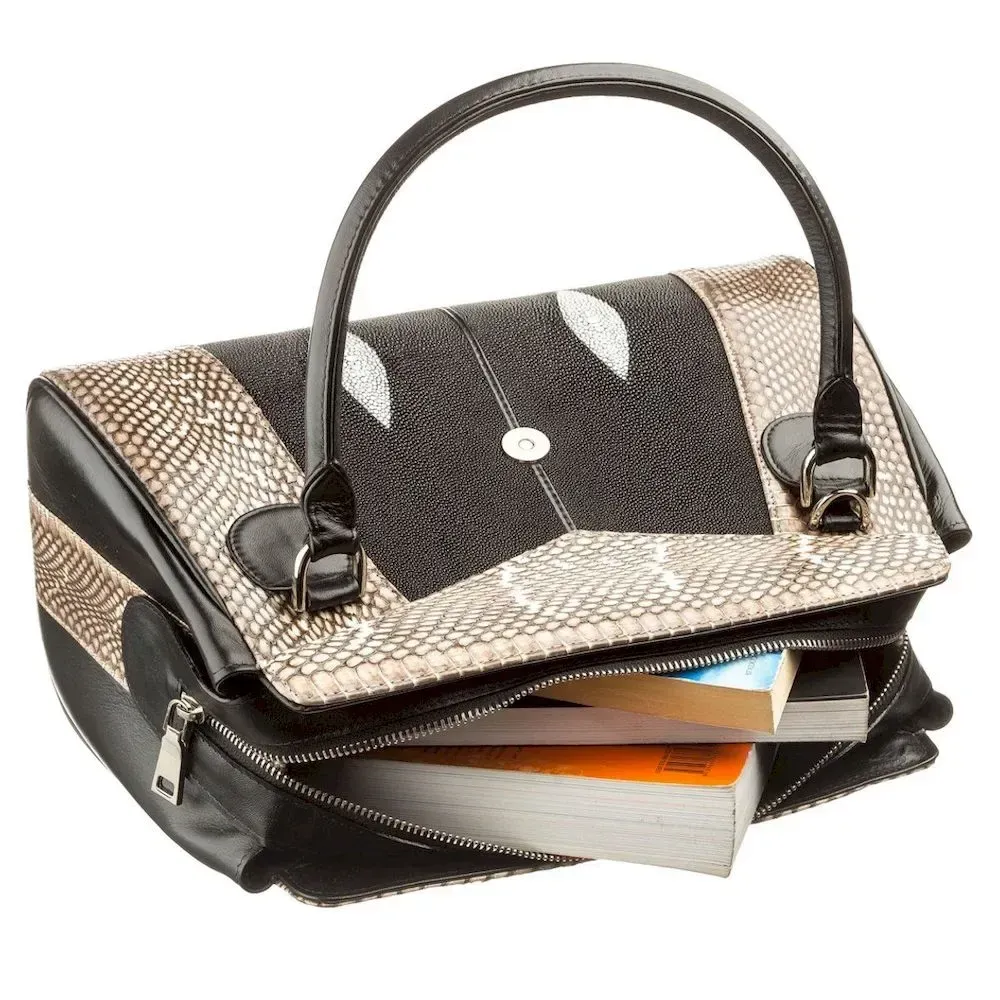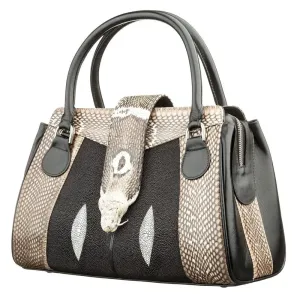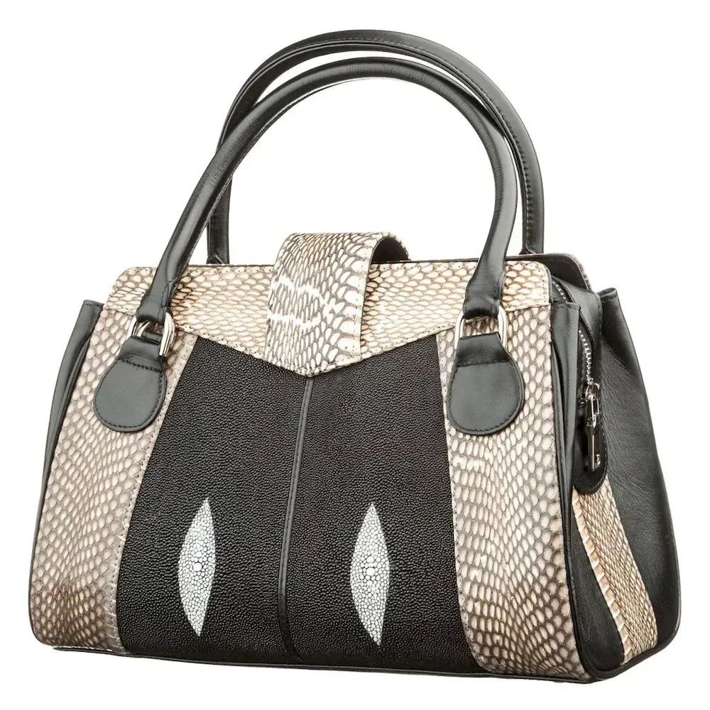 Сумка жіноча STINGRAY LEATHER 18502 із натуральної шкіри морського скату зі вставками зі шкіри пітона Чорна