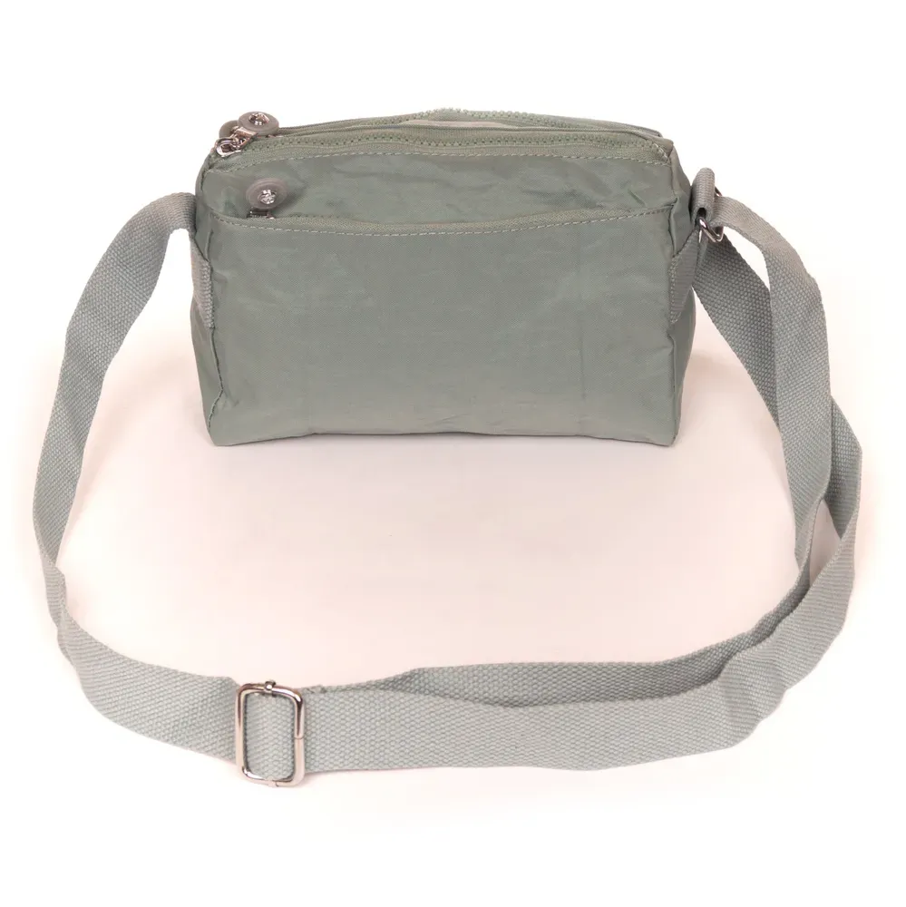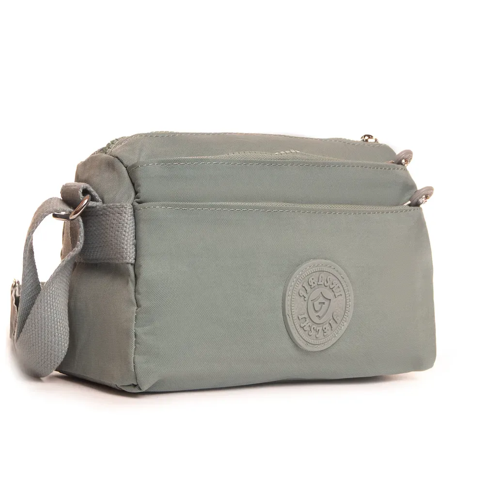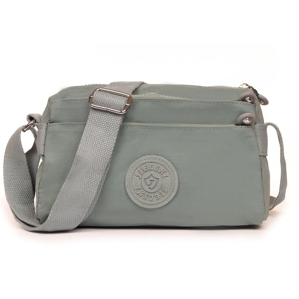 Женская сумочка кросс боди. Изготовлена из водотталкивающего текстиля. Два отделения, закрываются на молнию. Внутри есть боковой карман на молнии и открытый карман с множеством отсеков для визитных карт. На фасаде и на обратной стороне находятся вместительные карманы на молнии.
