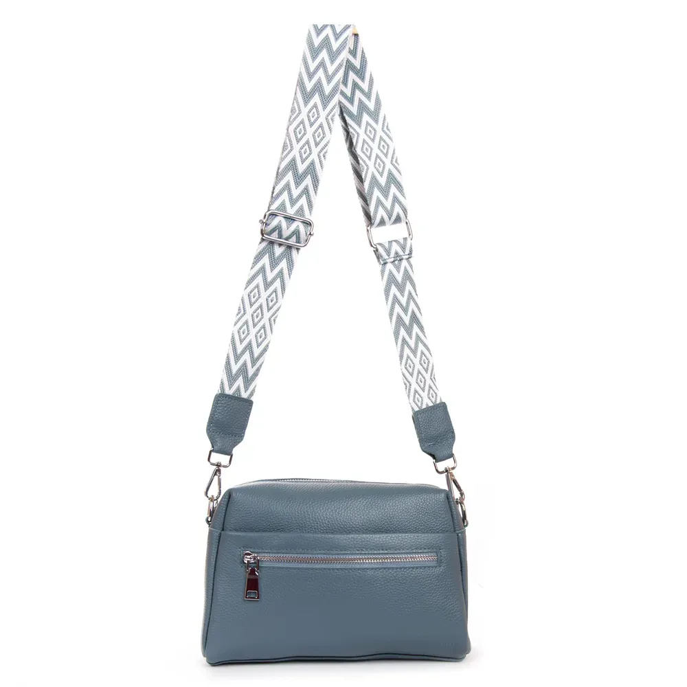 Жіноча сумочка крос боді. Виготовлена з водовідштовхувального текстилю. Два відділення, закриваються на блискавку. Усередині є бічна кишеня на блискавці та відкрита кишеня з безліччю відсіків для візитних карток. На фасаді та на звороті знаходяться місткі кишені на блискавці.