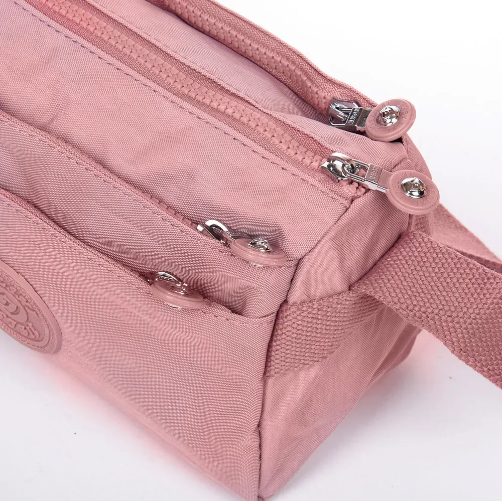 Женская сумочка кросс боди. Изготовлена из водотталкивающего текстиля. Два отделения, закрываются на молнию. Внутри есть боковой карман на молнии и открытый карман с множеством отсеков для визитных карт. На фасаде и на обратной стороне находятся вместительные карманы на молнии.