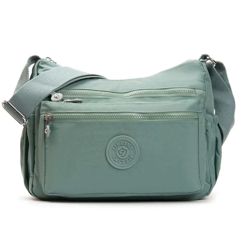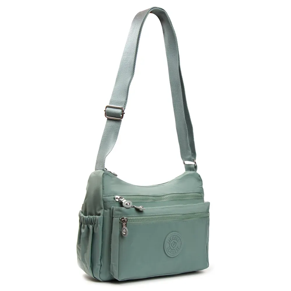 Жіноча сумочка крос боді. Виготовлена з водовідштовхувального текстилю. Одне відділення закривається на блискавку. Усередині є бічна кишеня на блискавці та відкрита кишеня. На фасаді та на звороті знаходяться місткі кишені на блискавці. А на торцях розташовані маленькі кишеньки на блискавці