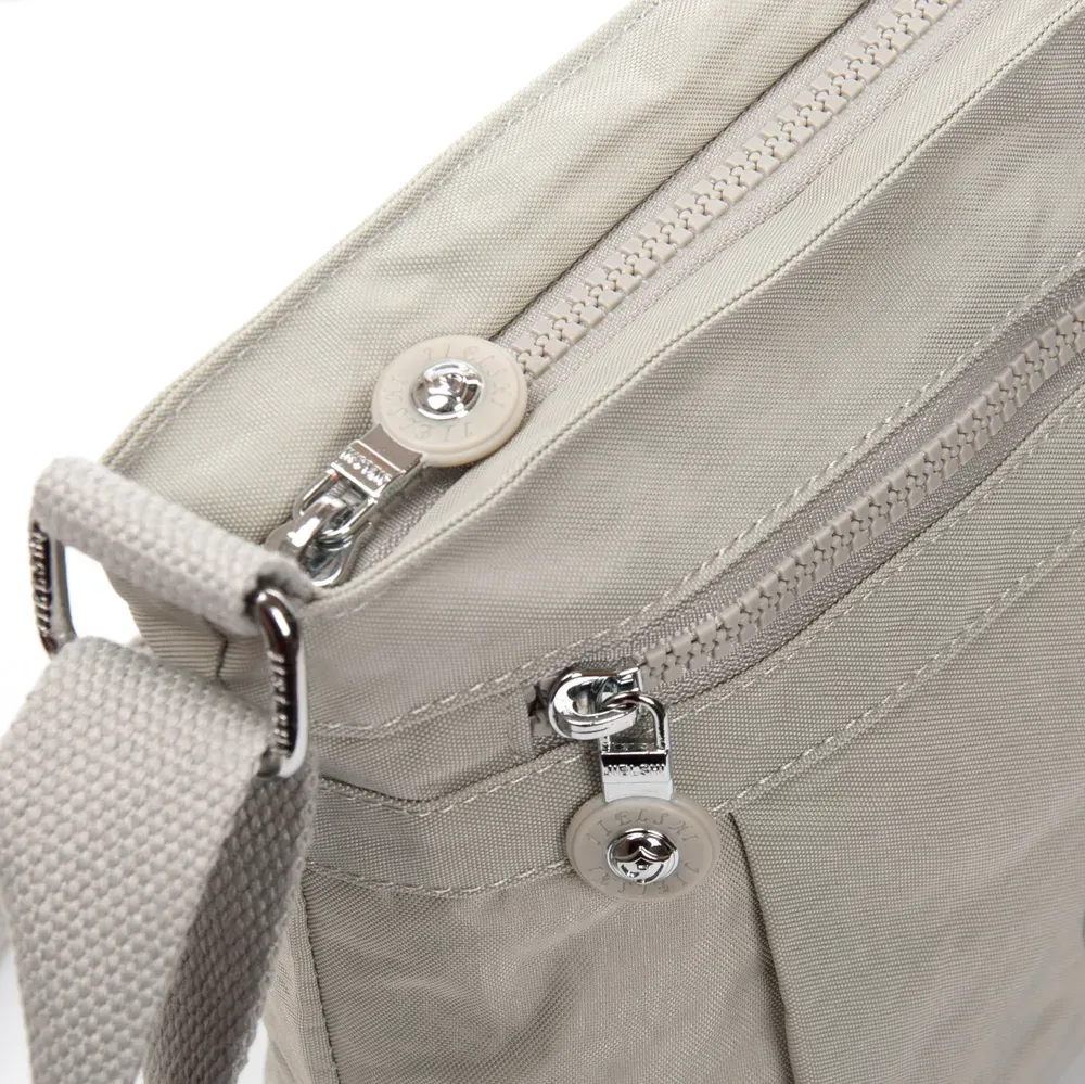 Женская сумка кросс боди. Изготовлена из водоотталкивающего текстиля. Одно отделение, закрывается на молнию. Внутри есть боковой карман на молнии и открытый двойной карман. На фасаде и на обратной стороне находятся вместительные карманы на молнии.