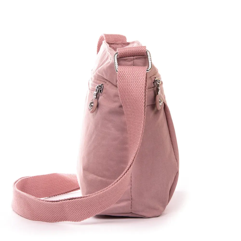 Женская сумка кросс боди. Изготовлена из водоотталкивающего текстиля. Одно отделение, закрывается на молнию. Внутри есть боковой карман на молнии и открытый двойной карман. На фасаде и на обратной стороне находятся вместительные карманы на молнии.