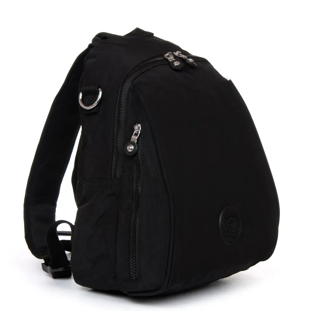 Жіноча сумочка. Виготовлена з водовідштовхувального текстилю. Одне відділення, закривається на блискавку. Усередині є бічна кишеня на блискавці і відкрита подвійна кишеня. На фасаді та на звороті знаходяться місткі кишені на блискавці.