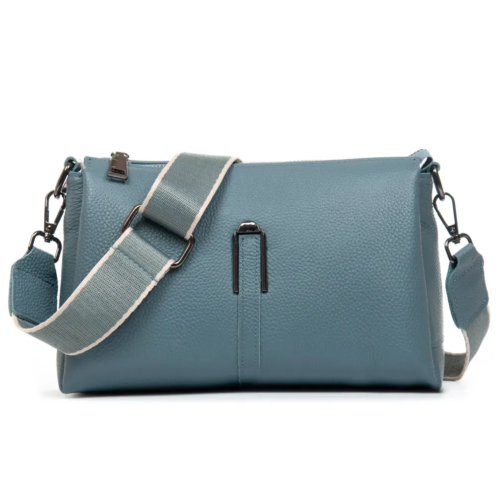 Жіноча сумка крос боді. Виготовлена з водовідштовхувального текстилю. Подвійне відділення, закривається на блискавку. Усередині є кишеня-перегородка на блискавці, бічна кишеня на блискавці та відкрита подвійна кишеня. На фасаді розташовані три великі кишені на блискавці, а на звороті знаходиться одна містка кишеня на блискавці. На торцях сумочки є невеликі кишені на резинці. Плечовий ремінь шириною 4 см. і регулюється по довжині. /p>