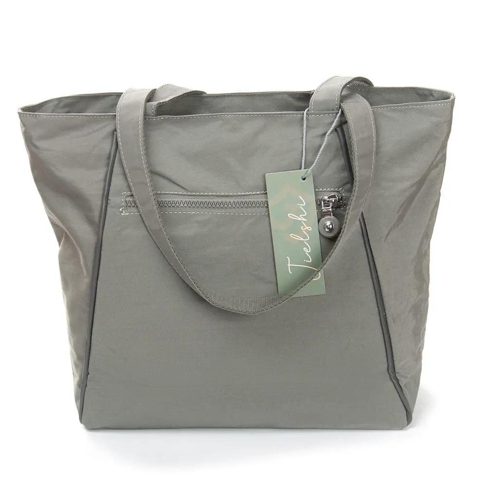 Женская сумка-шоппер Jielshi. Изготовлена из водоотталкивающего текстиля. Закрывается на молнию. Внутри находится основное и дополнительное отделения, разделенные карманом-перегородкой на молнии, большой боковой карман на молнии и открытый карман. На обратной стороне сумки находится вместительный карман на молнии.