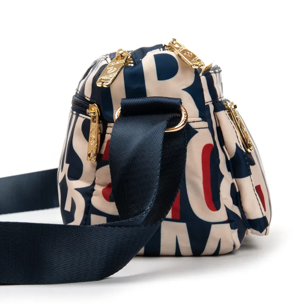 Женская сумочка кросс боди. Изготовлена из водотталкивающего текстиля. Два отделения, закрываются на молнию. Внутри есть боковой карман на молнии. На фасаде и на обратной стороне находятся вместительные карманы на молнии.