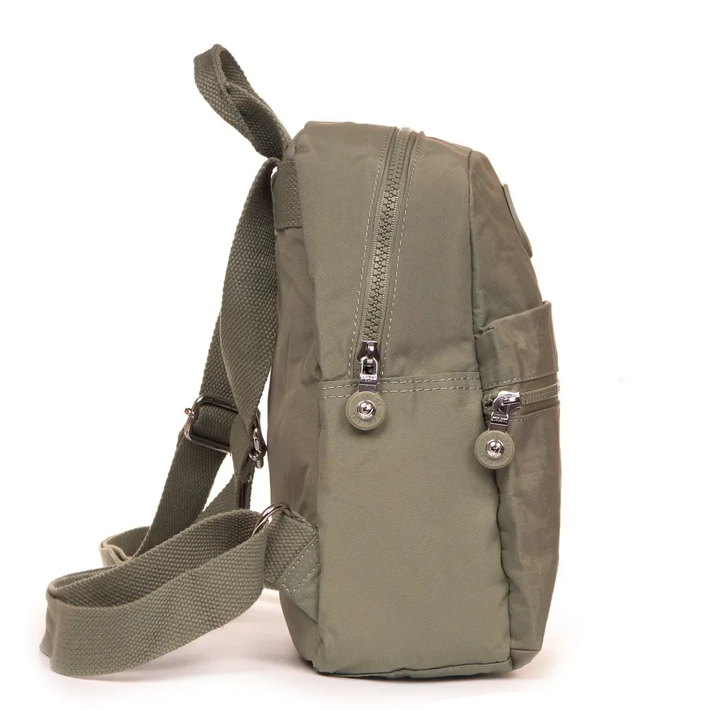 Женский рюкзак. Изготовлен из водоотталкивающего текстиля. Одно отделение, закрывается на молнию. Внутри есть боковой карман на молнии и открытый карман. На фасаде рюкзака находится вместительный карман на молнии.