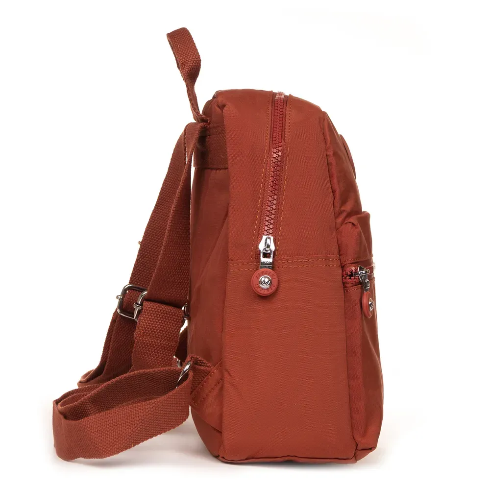 Женский рюкзак. Изготовлен из водоотталкивающего текстиля. Одно отделение, закрывается на молнию. Внутри есть боковой карман на молнии и открытый карман. На фасаде рюкзака находится вместительный карман на молнии.
