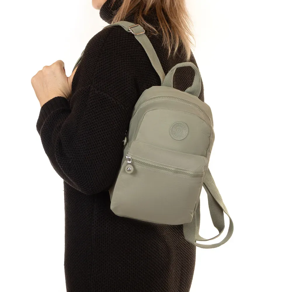 Женский рюкзак. Изготовлен из водоотталкивающего текстиля. Одно отделение, закрывается на молнию. Внутри есть боковой карман на молнии и открытый карман. На фасаде рюкзака находится вместительный карман на молнии.