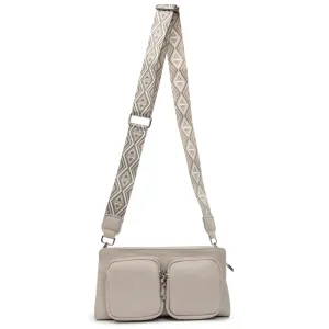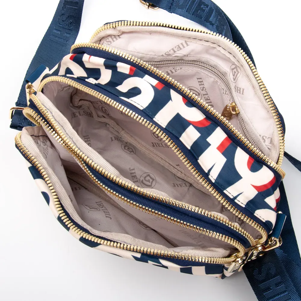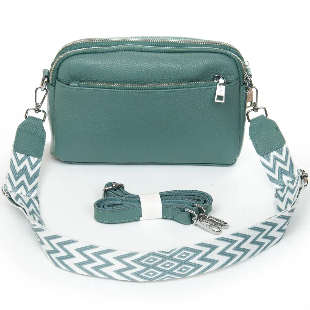 Жіноча сумочка крос боді. Виготовлена з водовідштовхувального текстилю. Два відділення, закриваються на блискавку. Всередині є бічна кишеня на блискавці та відкрита кишеня. На фасаді та на звороті знаходяться місткі кишені на блискавці.