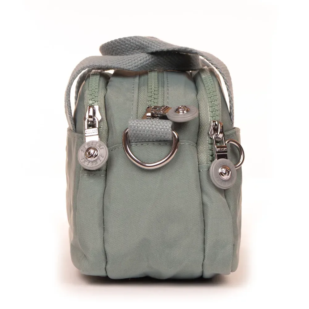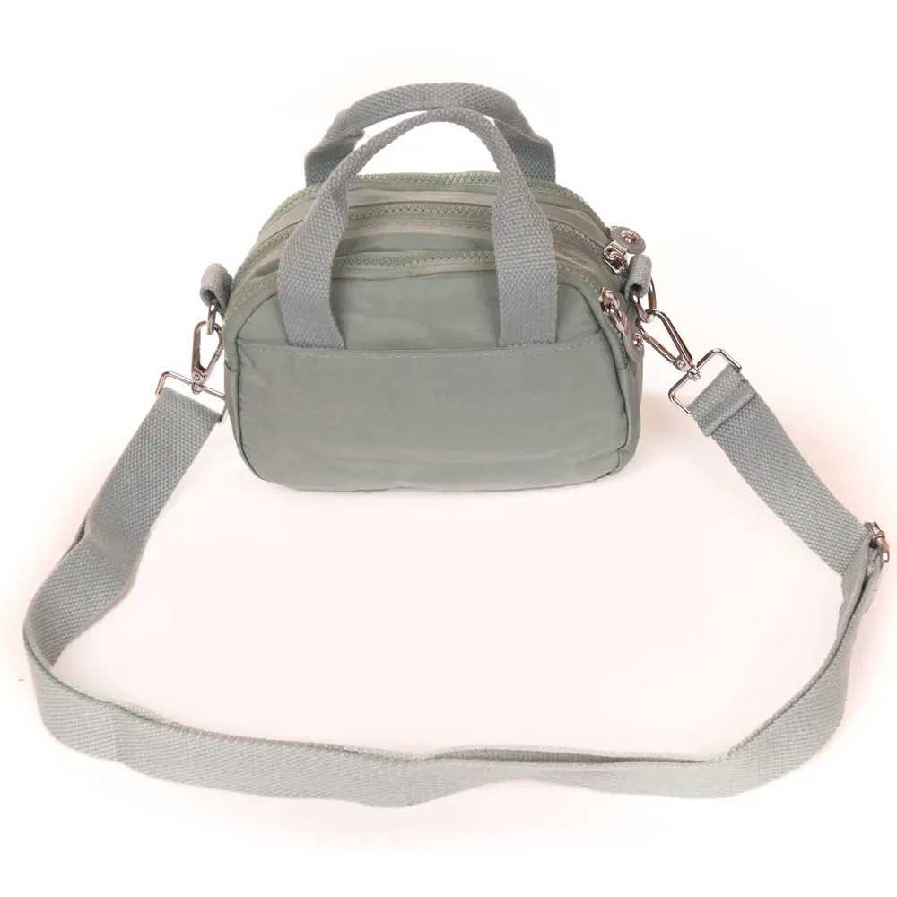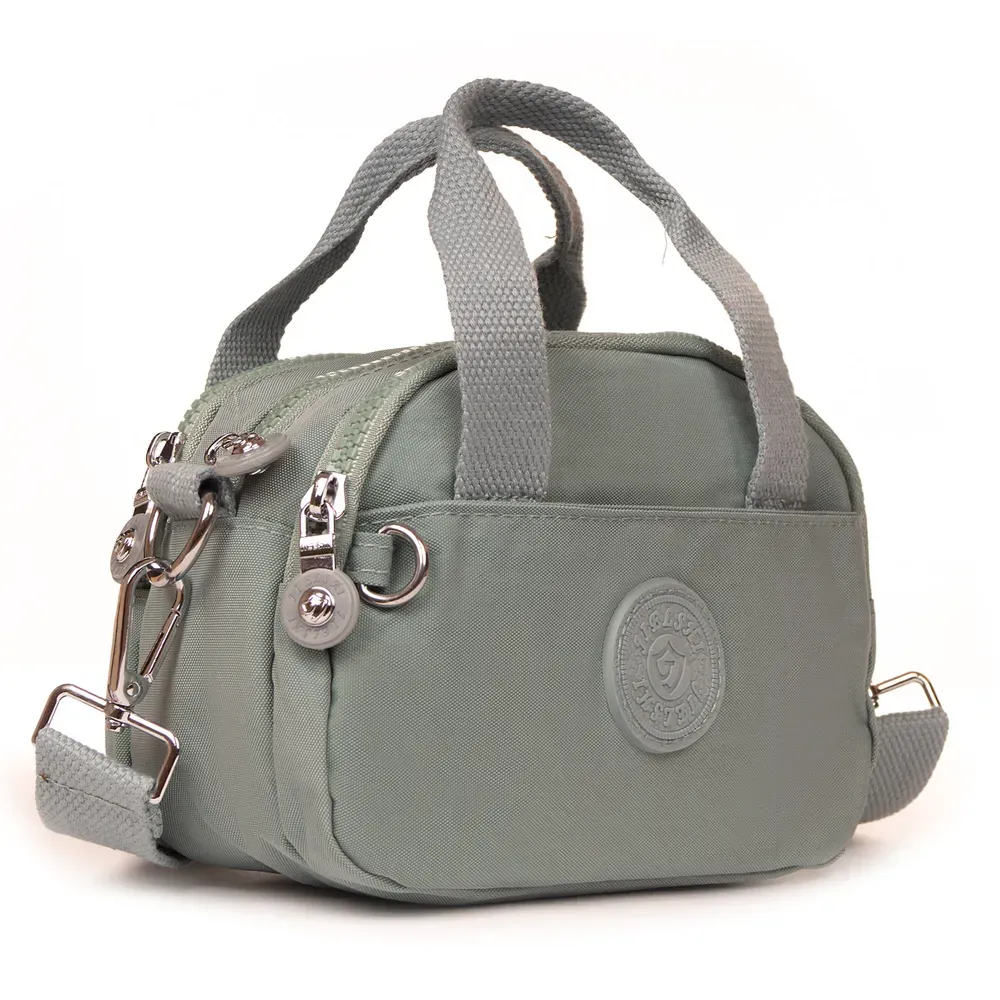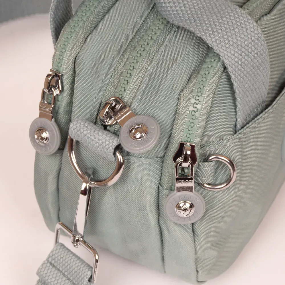 Женская сумочка кросс боди. Изготовлена из водотталкивающего текстиля. Три отделения, закрываются на молнию. Внутри есть боковой карман на молнии. На фасаде и на обратной стороне находятся вместительные карманы на магнитной кнопке.