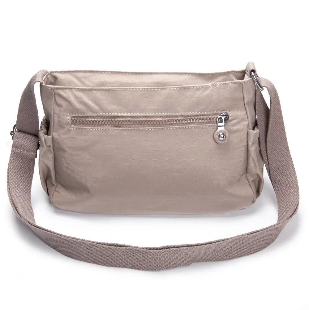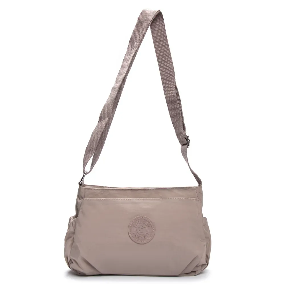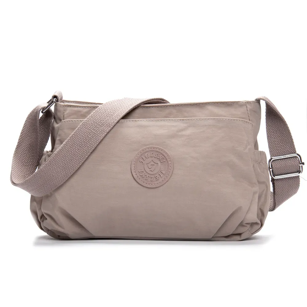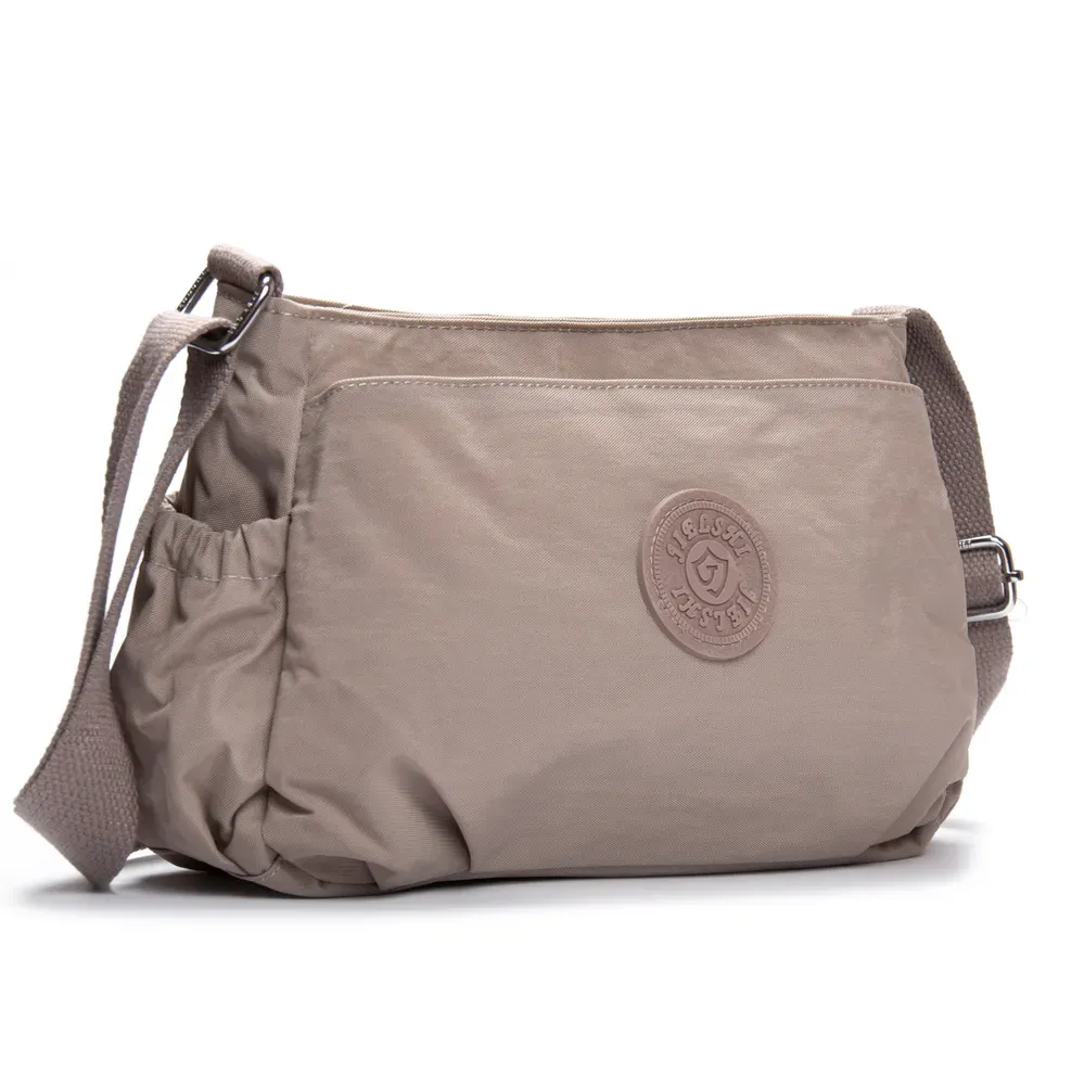 Женская сумка кросс-боди Jielshi. Изготовлена из водоотталкивающего текстиля. Одно отделение, закрывается на молнию. Внутри есть большой открытый боковой карман и карман на молнии. На фасаде и на обратной стороне находятся вместительные карманы на молнии. На торцах сумочки есть небольшие открытые карманы на резинке.