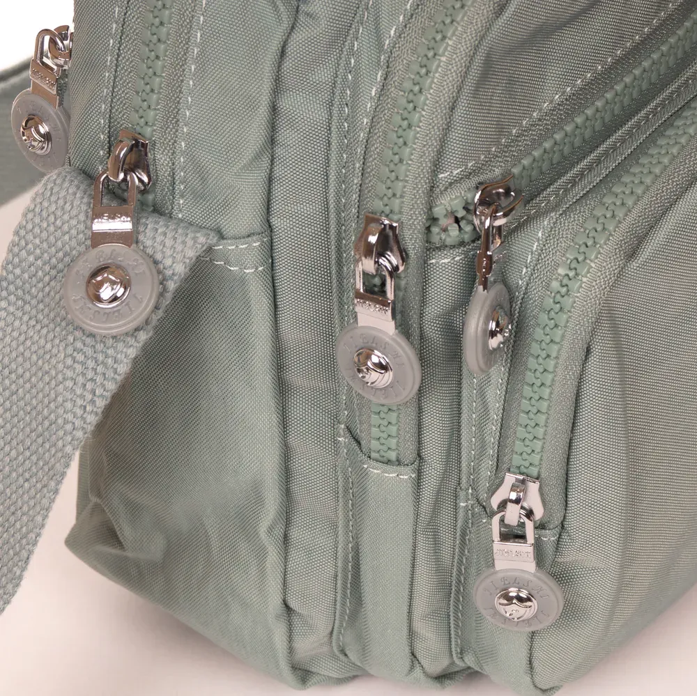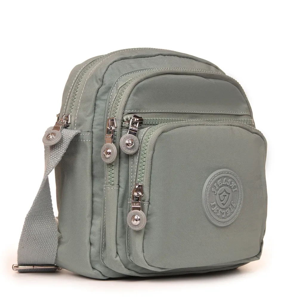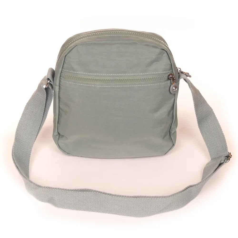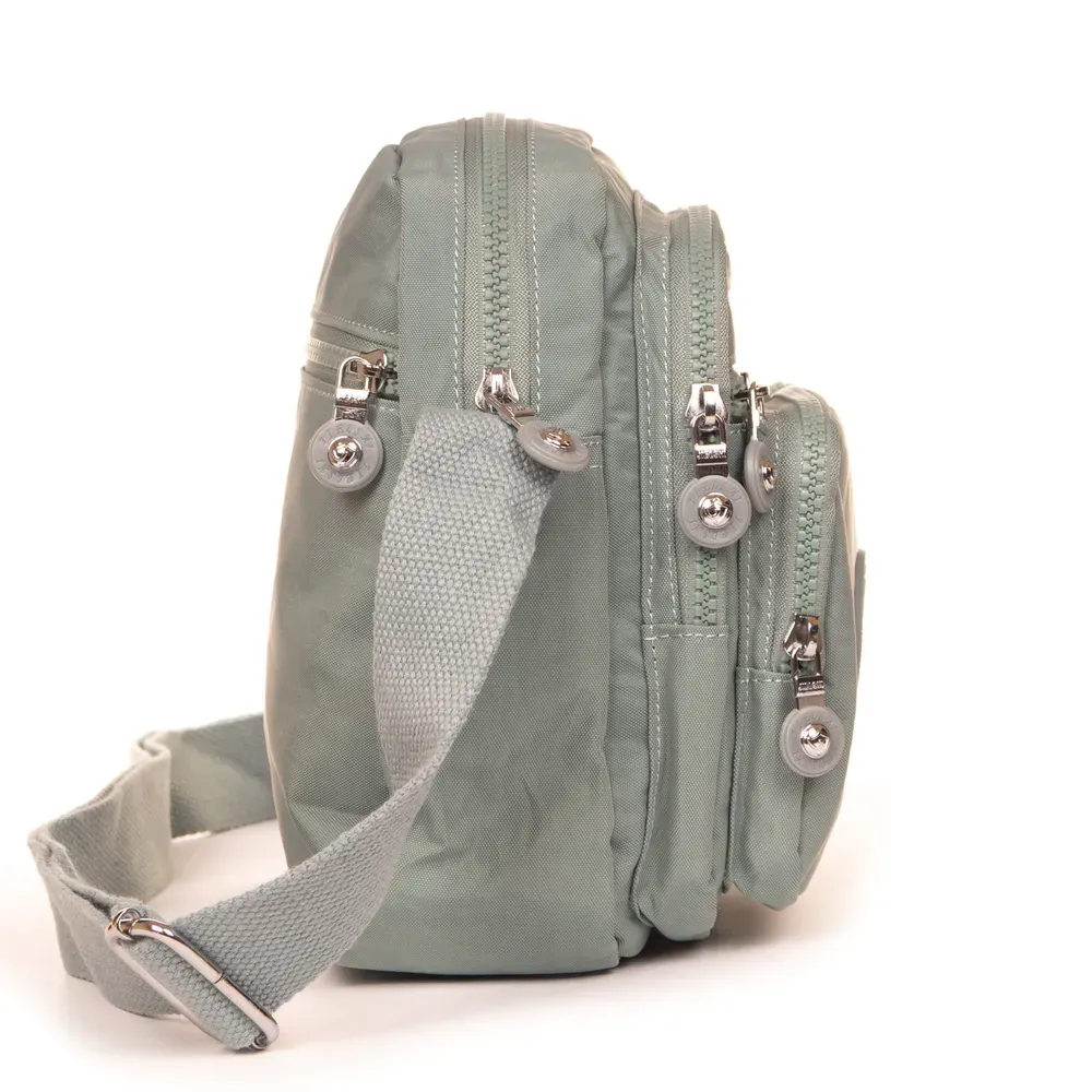 Женская сумочка кросс боди. Изготовлена из водотталкивающего текстиля. Два отделения, закрываются на молнию. Внутри есть боковой карман на молнии. На фасаде и на обратной стороне находятся вместительные карманы на молнии.