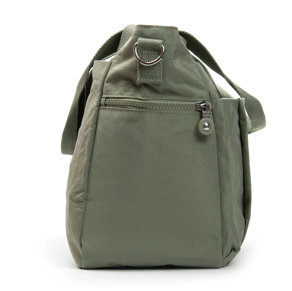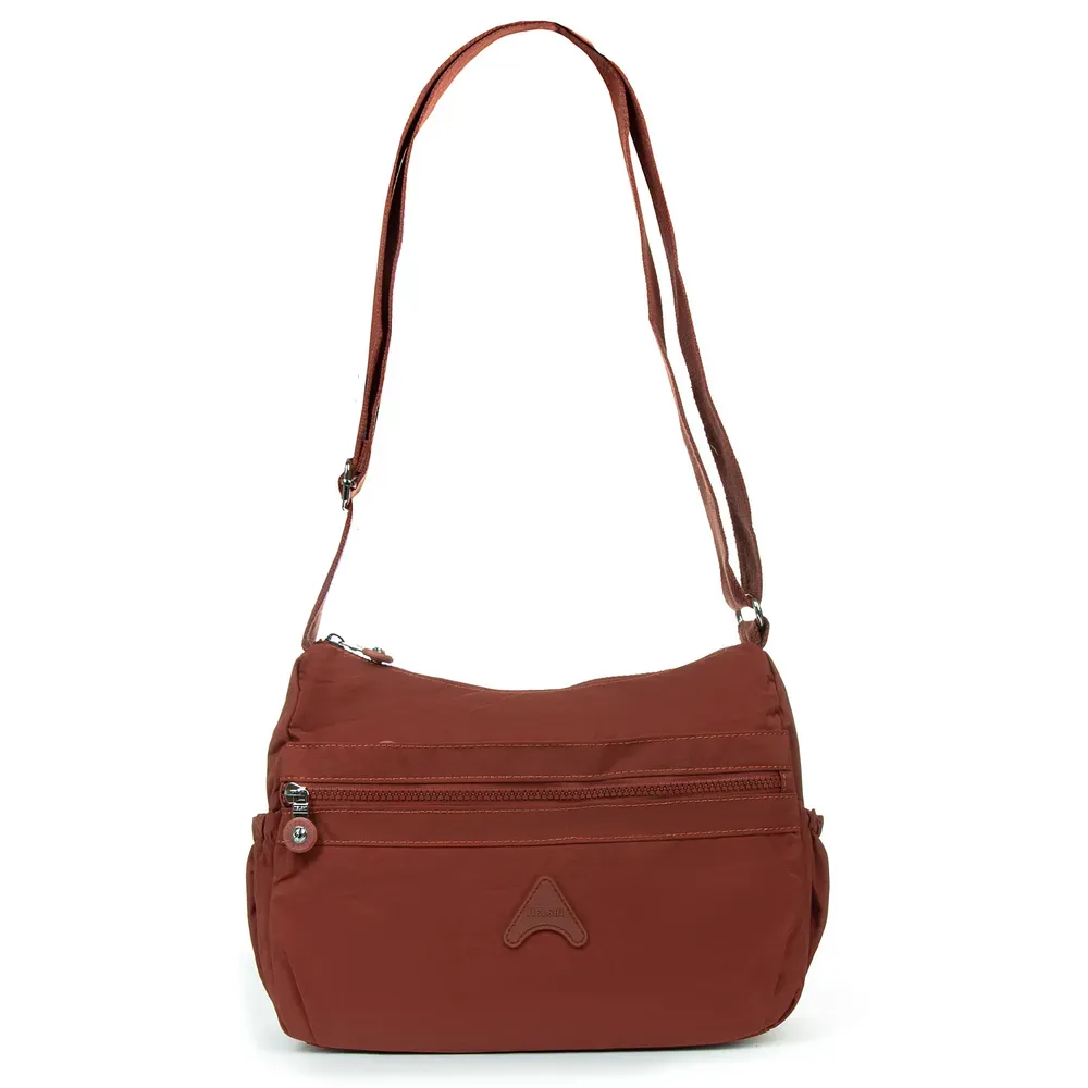 Жіноча сумочка крос боді. Виготовлена з водовідштовхувального текстилю. Два відділення, закриваються на блискавку. Усередині є бічна кишеня на блискавці. На фасаді та на звороті знаходяться місткі кишені на блискавці.