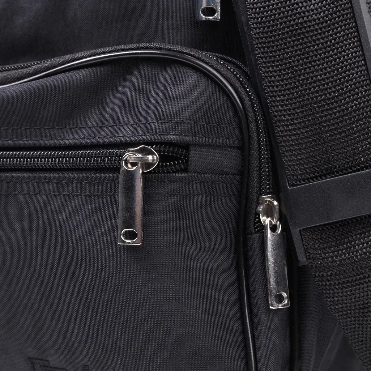 Середня прямокутна сумка на кожен день з якісного матеріалу - поліестеру . Виріб має оптимальний розмір для Вашої зручності, її можна використовувати як сумку на кожен день, а також брати з собою у невеликі подорожі чи відрядження. Функціонал сумки продуманий до дрібниць, вона складається із двох великих відділень та трьох кишень різних розмірів зовні, що дуже важливо для порядку у речах. На лицьовій стороні, у правому нижньому кутку, вишитий значок бренду, що є запорукою якості. Носити аксесуар можна в руках, для цього передбачена пластикова ручка і на плечі за допомогою надійного регульованого ременя. Пошита сумка акуратно, всі рядки рівні, підкладка міцна чорного кольору, надійна і якісна фурнітура. Тканинна сумка стане бажаним подарунком для ваших близьких і найголовніше дуже корисним та необхідним. Сумка з поліестеру, дуже вигідна альтернатива шкіряним сумкам, тому що прослужить не менше, не втрачаючи свого первісного вигляду, а ціна приємно порадує.