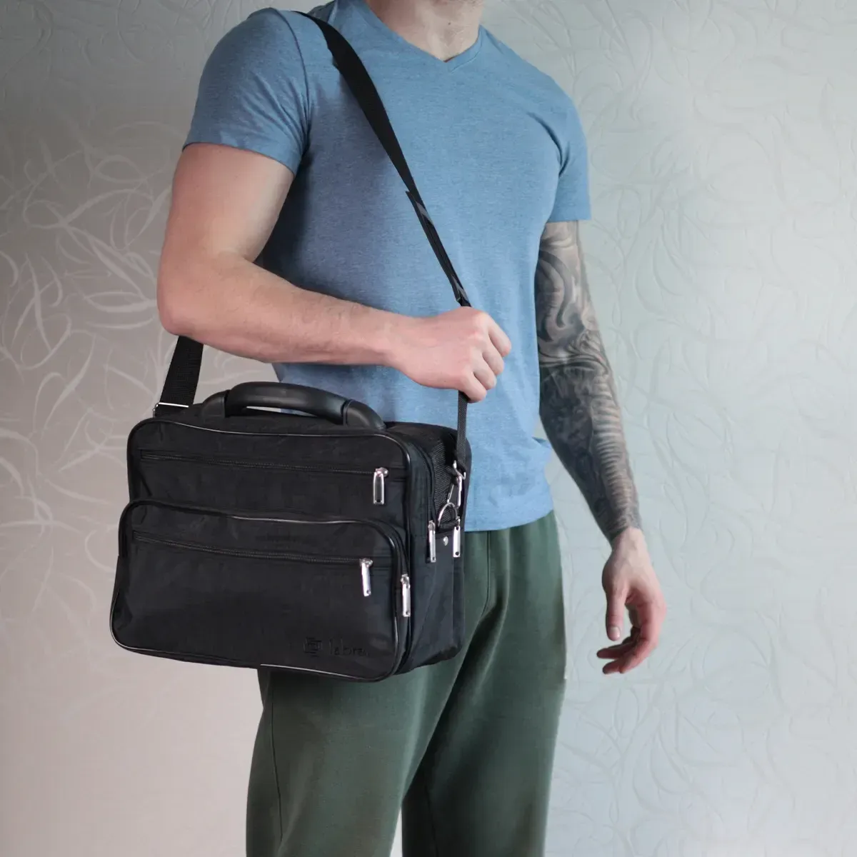Текстильна чоловіча сумка з надійною пластиковою ручкою FABRA 22587 Чорний