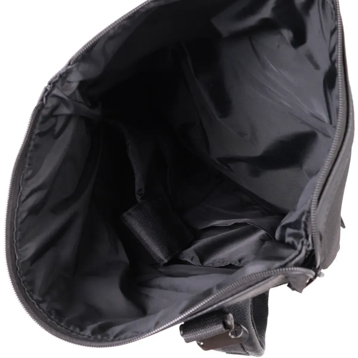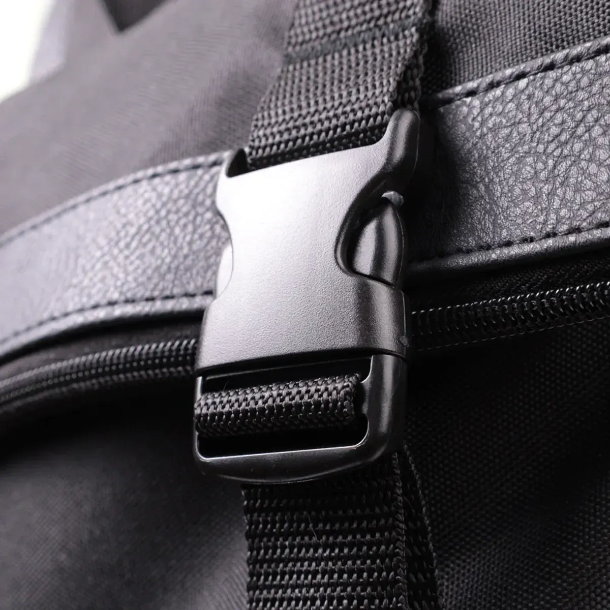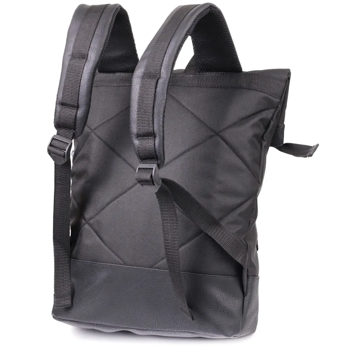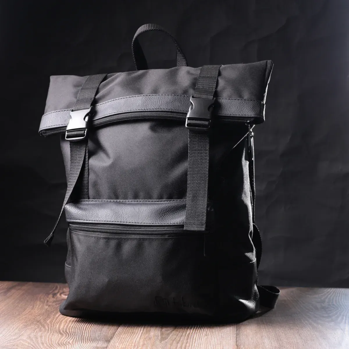 Трендовий рюкзак для ноутбука чорного кольору, з конструкцією Rolltop, що дозволяє збільшити місткість виробу. Висота виробу у складеному вигляді 40 сантиметрів, у розкладеному – 53 сантиметри. Аксесуар виготовлений з якісного матеріалу - поліестеру, знаменитого своєю міцністю та зносостійкістю. Також у рюкзаку присутні акценти з еко-шкіри, які надають виробу більш стильного вигляду. На лицьовій стороні, у правому нижньому кутку, розташований вишитий логотип бренду, що є запорукою якості. Усередині знаходяться два відділення: одне з них для ноутбука діагоналлю до 15,6 дюймів з ущільненою стінкою. Зовні: накладна горизонтальна кишеня на блискавці на лицьовій стороні та вертикальна бічна кишеня на блискавці. Носити рюкзак можна в руці, для цього призначена текстильна ручка, а також на спині, для цього є ущільнені лямки та ущільнена спинка для більшої зручності. Фурнітура яка використовується в аксесуарі, якісна, прослужить не один рік, рядки рівні, акуратні краї, підкладка міцна. Відмінний рюкзак як на кожен день, так і в подорожі, яка прослужить Вам не один рік і радуватиме око своїм первісним виглядом.