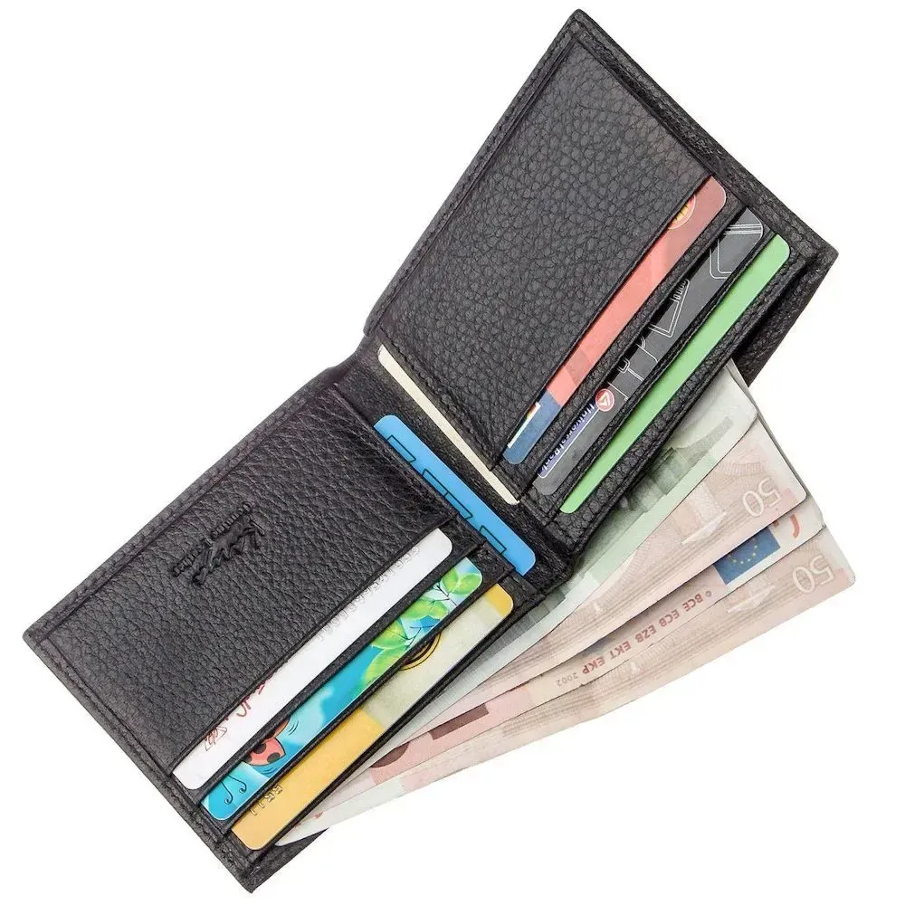 Тонке чоловіче портмоне із натуральної телячої шкіри. Аксесуар легко поміститься у кишеню штанів. Виріб без застібки у дві складення Виконано портмоне зі шкіри типу флотар, яка практично не вибаглива у догляді та має високий ступінь зносостійкості. На лицьовій стороні – металевий логотип бренду. У комплекті до гаманця йде фірмова картонна коробка. Рекомендуємо вам цю модель, якщо ви шукаєте компактний і маленький гаманець у кишеню.
