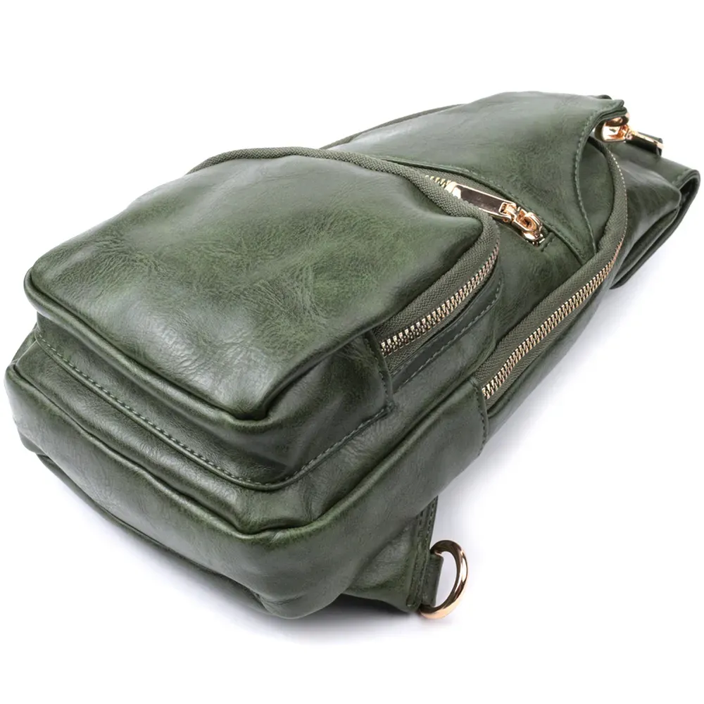 Трендова жіноча слінг сумка через плече з екошкіри Vintage 22755 Зелений