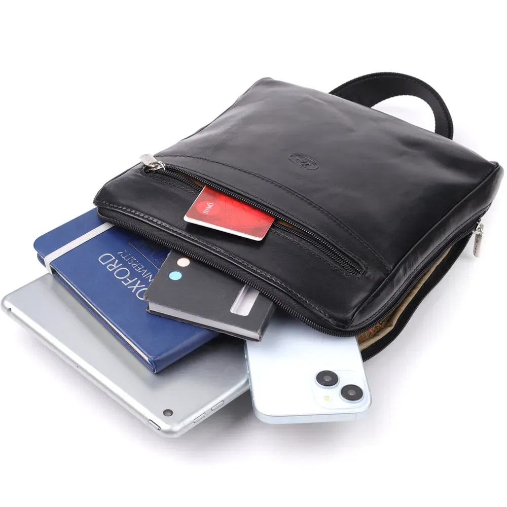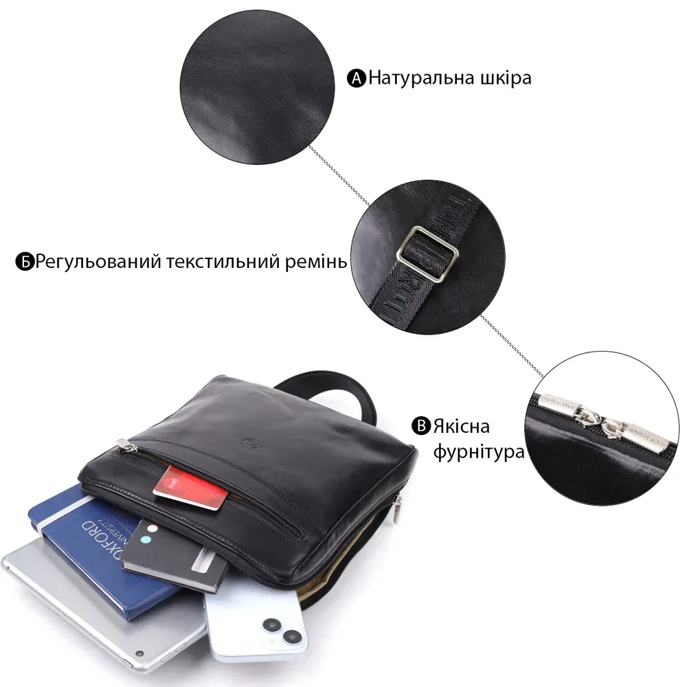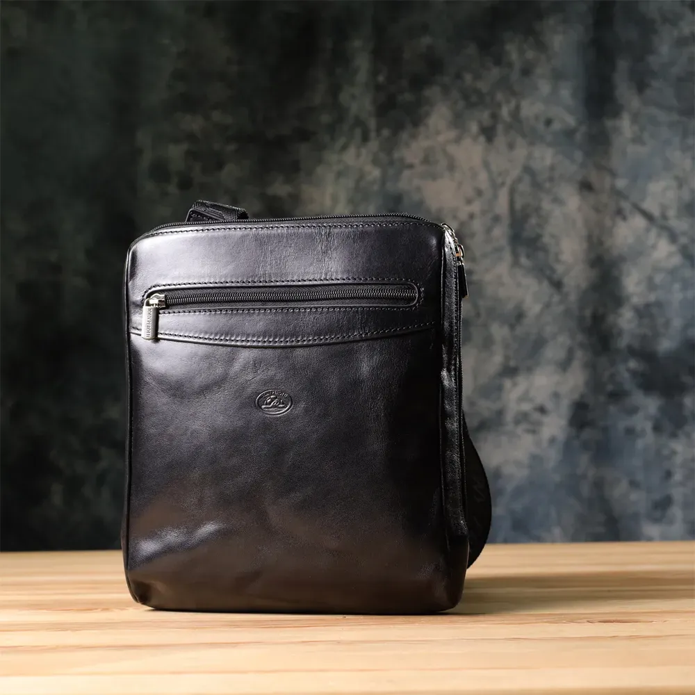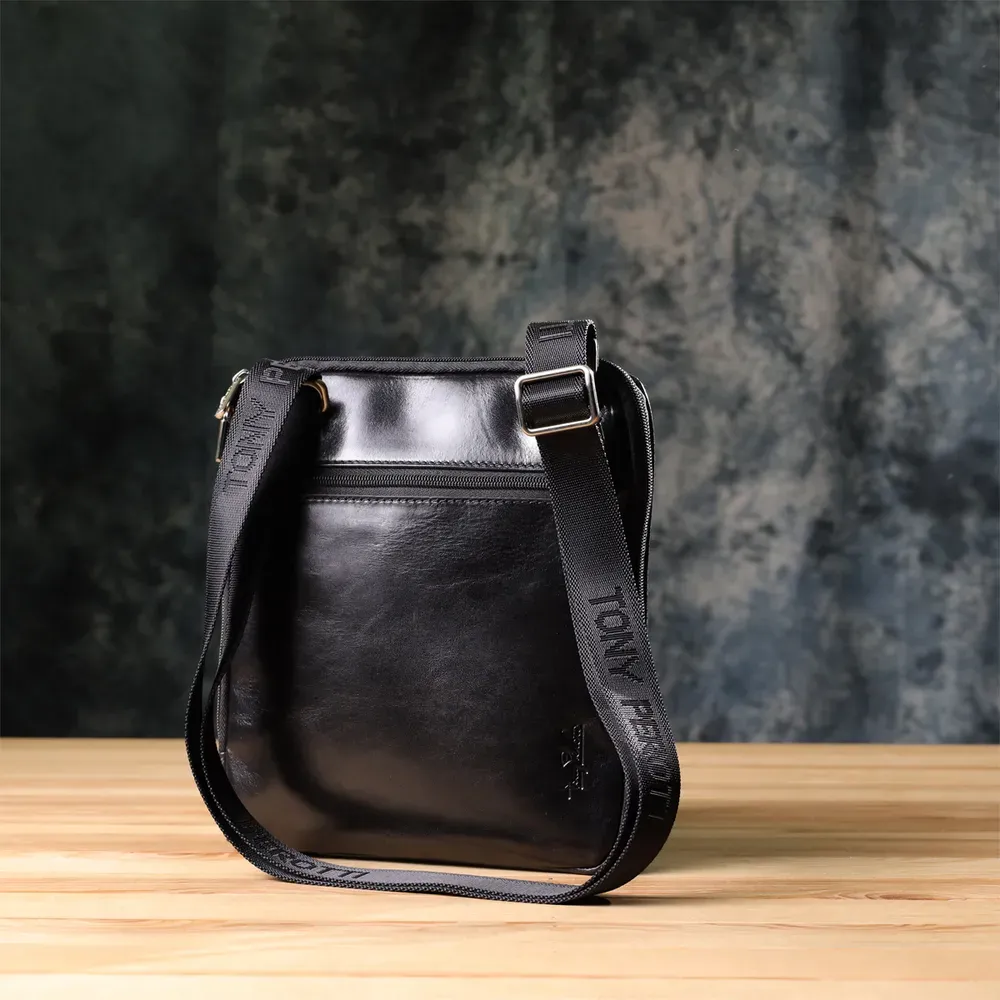 Цікава чоловіча сумка через плече з гладкої натуральної шкіри Tony Perotti 20855_1 (9137-20 nero) Чорний