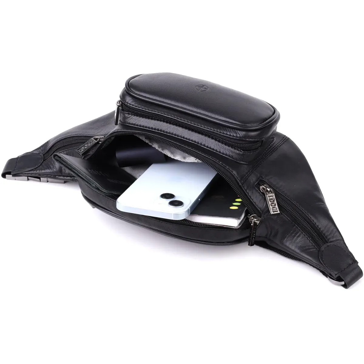Модна шкіряна сумка-бананка Tony Perotti у чорному кольорі – практичний та стильний аксесуар для активного способу життя. Виріб виконаний з натуральної телячої шкіри, відрізняється зносостійкістю та акуратним зовнішнім виглядом. Продумана система кишень дозволяє зручно розмістити телефон, документи та особисті дрібниці. Регульований ремінець з металевим клямкою забезпечує комфорт при носінні, а брендована фурнітура підкреслює преміальну якість і статус аксесуара.