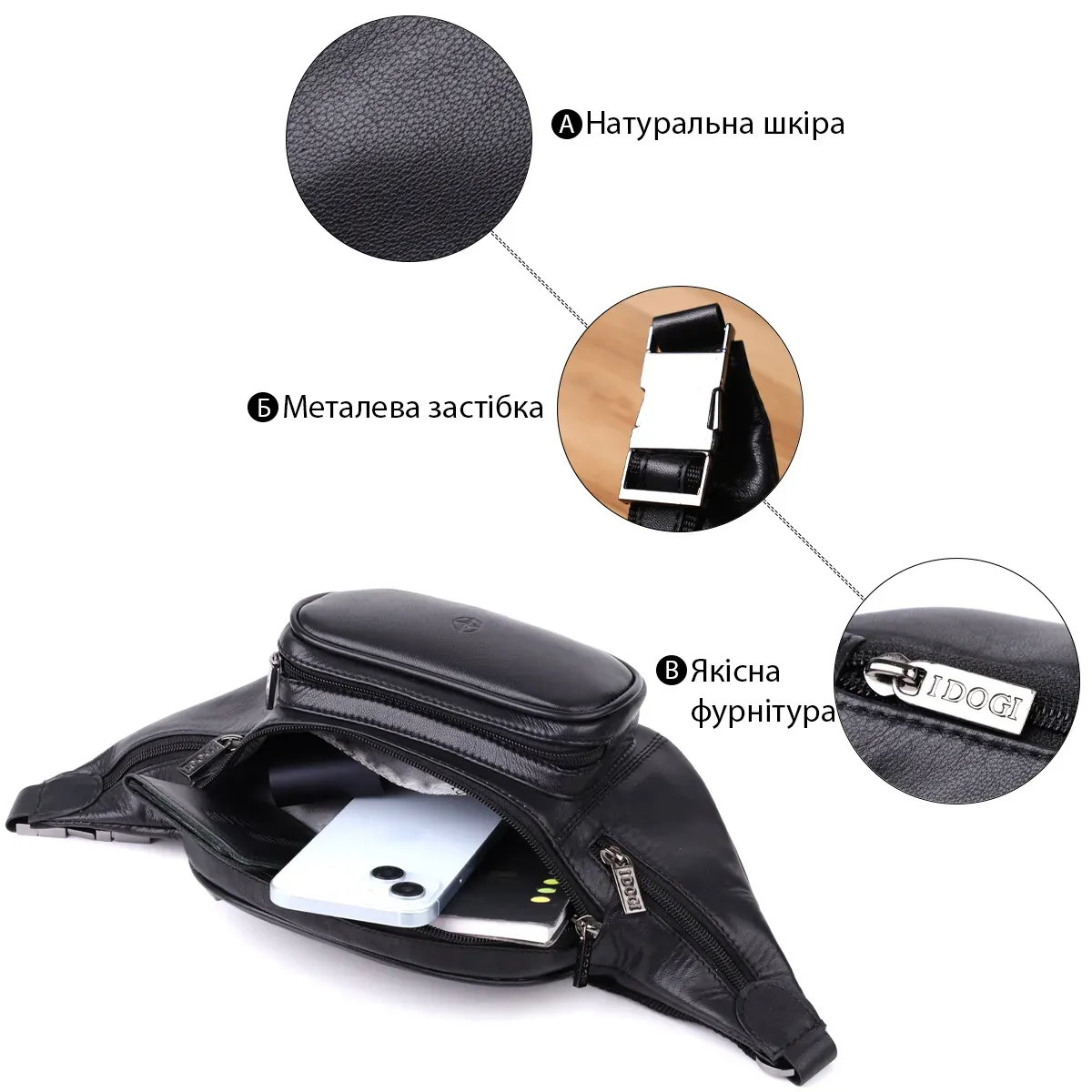 - можливість носити сумку на поясі або через плече;