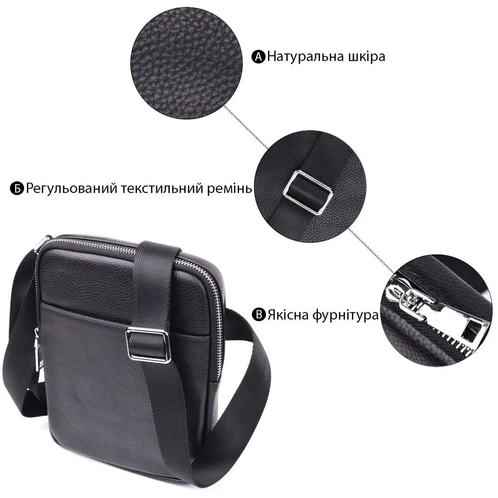 Цікава плечова сумка для чоловіків з натуральної шкіри Vintage 15100 Чорний