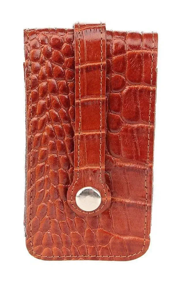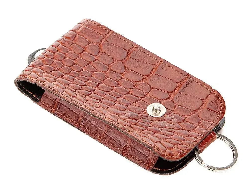 Розкішна ключниця, кольори коньяку, виготовлена із високоякісної натуральної шкіри з тисненням під шкіру крокодила. Складається аксесуар з карабіну для ключів.